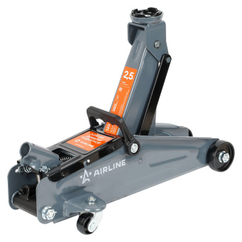 Подкатной домкрат AIRLINE грузоподъемностью 2.5т предназначен для подъема легковых автомобилей. Высота подхвата - 120 мм. Высота подъема - 350 мм. Домкрат выполнен из высокопрочной стали и оборудован ребрами жёсткости, что придает ему дополнительную устойчивость. Морозостойкое масло сохраняет рабочие функции при низких температурах. Оснащен ремкомплектом поршневых колец. Абсолютно все домкраты производятся по единой технологии на современных автоматизированных предприятиях. Тестирование каждого домкрата происходит в собственной испытательной лаборатории, что является залогом качества и надежности.
