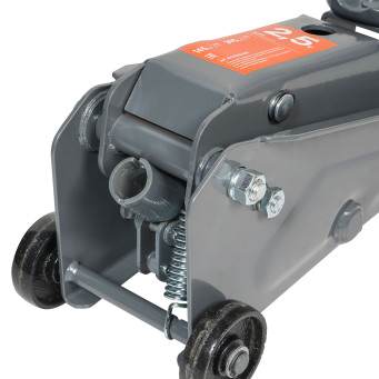 Компактный подкатной домкрат грузоподъемностью 2.5т MIN-145мм, MAX-395мм. Благодаря своим небольшим размерам удобен к применению в ограниченных пространствах гаража. Подходит для транспортировки в багажнике автомобиля, занимает мало места. Морозостойкое масло сохраняет рабочие функции при низких температурах. Комплектуется ремкомплектом поршневых колец.