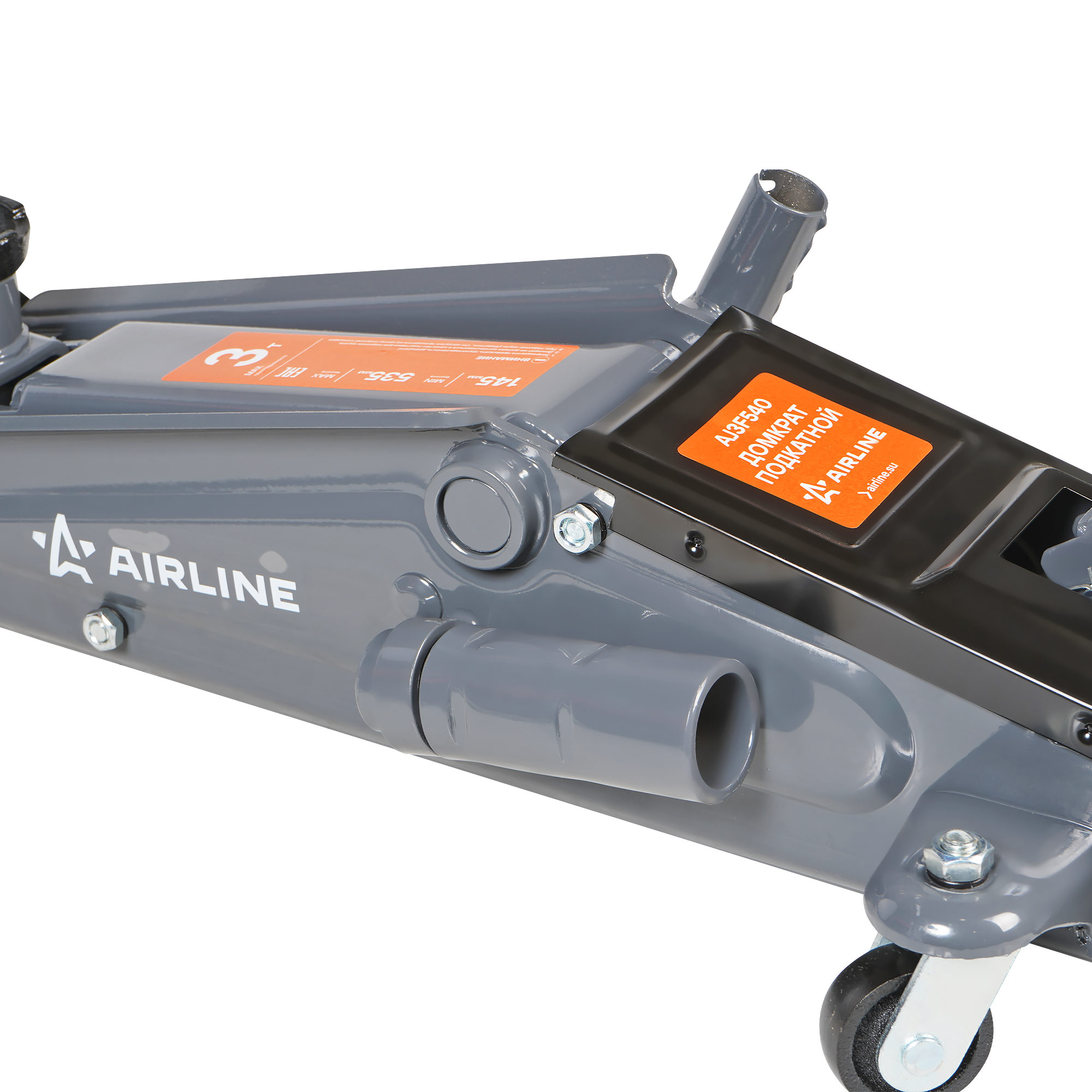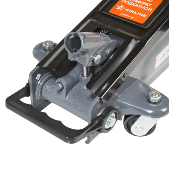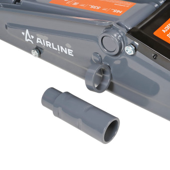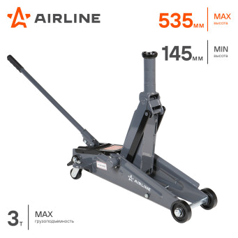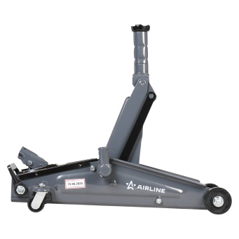 Подкатной домкрат AIRLINE 3т с увеличенной высотой подъема. Оснащен удлинителем с высотой 95 мм, благодаря которому максимальная высота подъема составляет 535 мм. Широко используется в мастерских по ремонту автомобилей и предназначен для обслуживания легкового коммерческого транспорта или внедорожников. В домкрате используется морозостойкое масло. Прочная металлическая конструкция защищает устройство от механических повреждений и продлевает срок службы. Домкрат снабжен ремкомплектом поршневых колец.