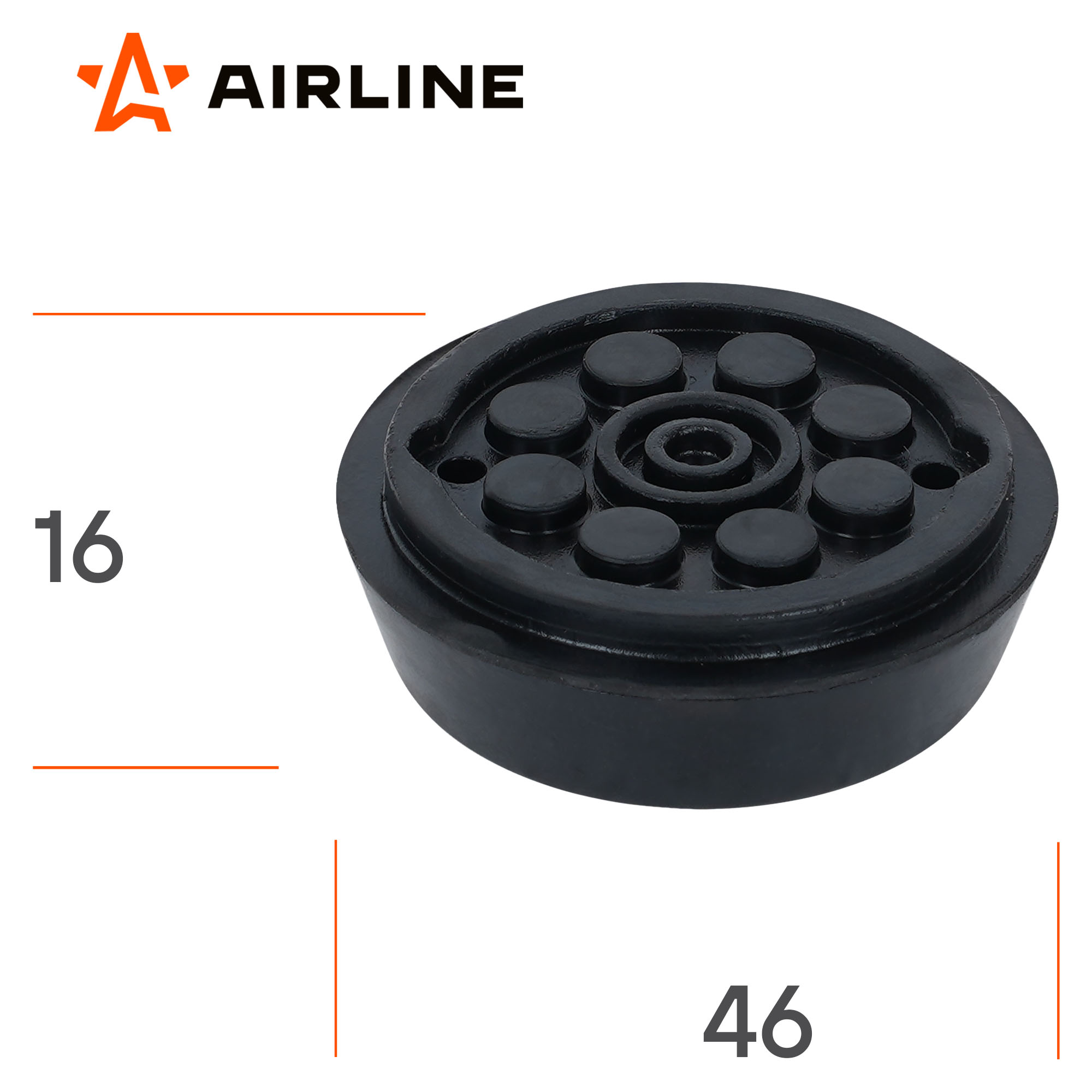 Накладка резиновая AIRLINE AJS08 предназначена для подкатных домкратов, исключает вероятность повреждения кузова, предотвращая самопроизвольное соскальзывание. Изготовлена из высокопрочной резины. Имеет хорошую стойкость к перепадам температуры, устойчива к разрезанию и стиранию. Быстро восстанавливается после снятия нагрузки. Высота насадки составляет 16 мм, а диаметр рабочей поверхности равен 46 мм.