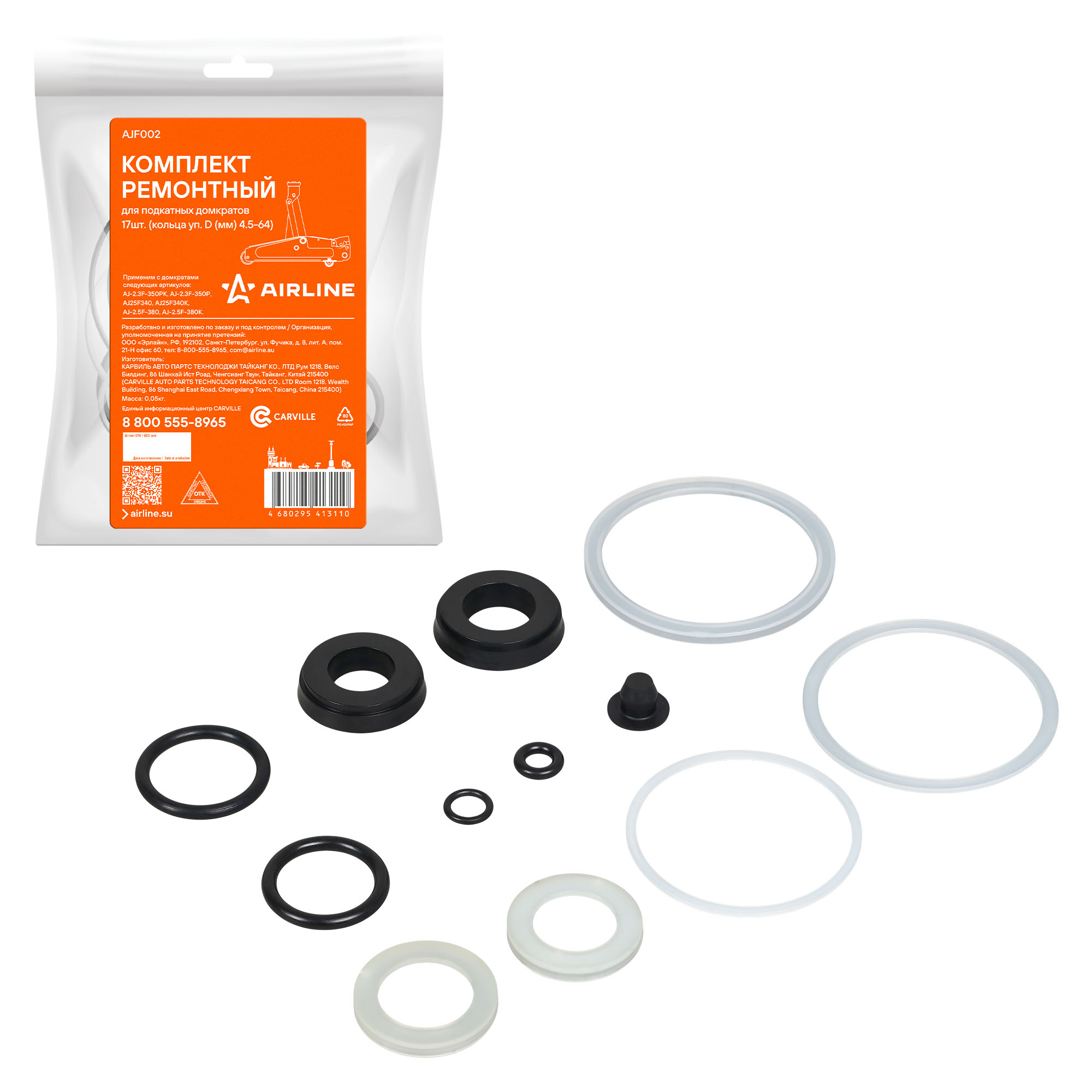 Универсальный ремонтный набор AIRLINE, предназначен для обслуживания подкатных домкратов. Применим с домкратами следующих артикулов: AJ-2.3F-350PK, AJ-2.3F-350P, AJ25F340, AJ25F340K, AJ-2.5F-380, AJ-2.5F-380K.
