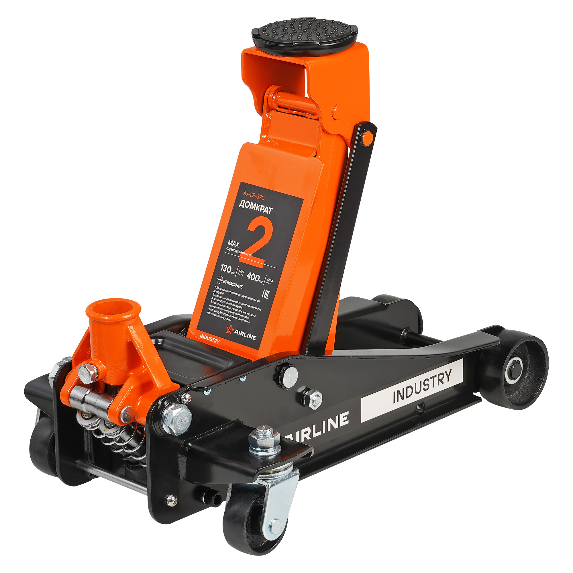 Подкатной домкрат AIRLINE грузоподъемностью 2 т предназначен для подъема всех видов автомобилей массой до 3 т. Высота подхвата - 130 мм. Высота подъема - 400 мм. Домкрат входит в линейку INDUSTRY. Предназначен для профессионального применения в автосервисах и шиномонтажных мастерских, а так же для личного использования. Вес домкрата составляет 19 кг. Внушительный рабочий ресурс достигается за счет усиленной конструкции рамы, прочных внутренних механизмов, износостойких компонентов. Позволяют эксплуатировать домкрат при самых агрессивных нагрузках в течении длительного периода времени. Внутри насоса используется морозостойкое масло, которое сохраняет работоспособность при отрицательных температурах.