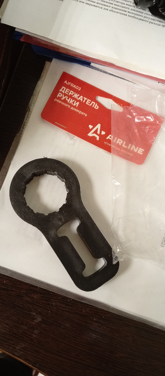 Достоинства: Хороший держатель , пластик плотный жёсткий , оделся на домкрат плотно ручка держится хорошо .