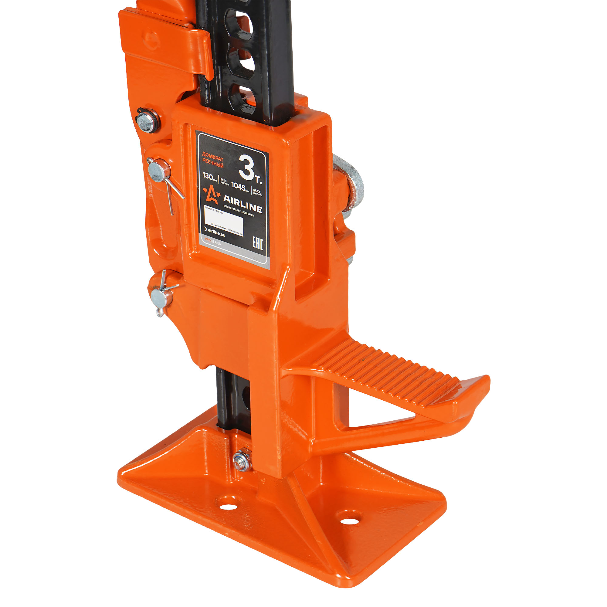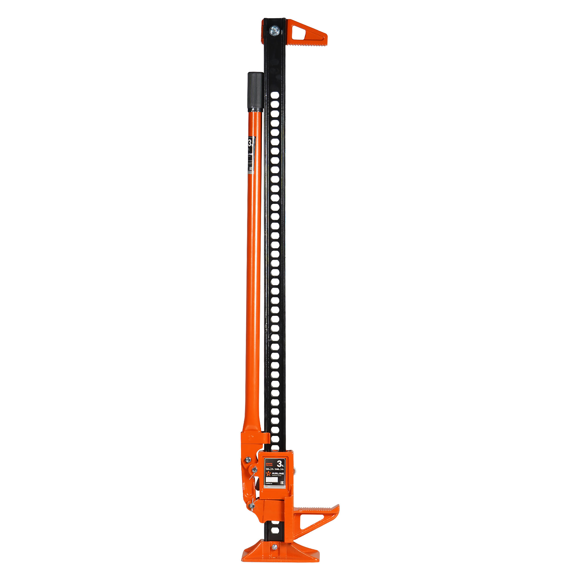 Реечный домкрат AIRLINE PRO AJ-FR-20 с усиленной конструкцией из чугуна и 45# стали способен поднимать и опускать грузы весом 3 т. Механизм домкрата выполнен полностью из #45 стали, что позволяет эксплуатировать его в условиях самых агрессивных нагрузок. Минимальная высота подъема - 130мм, максимальная - 1045 мм. Применяется для подъёма транспортных средств и перемещения грузов. Шаговый механизм позволяет произвести подъём груза и точную установку на заданной высоте. Нижний захват расположен под углом 90° с целью поднятия груза с небольшой высоты. Для удержания груза на заданной высоте, используется стопорное устройство. Основным применением является подъём транспортных средств в условиях бездорожья, а также в качестве лебедки или стягивающего устройства. Может использоваться при ремонтных, монтажно-демонтажных и строительных работ. На СТО отлично выполняет функцию поднятия части авто с целью замены колеса или проведения ремонтных и профилактических работ.