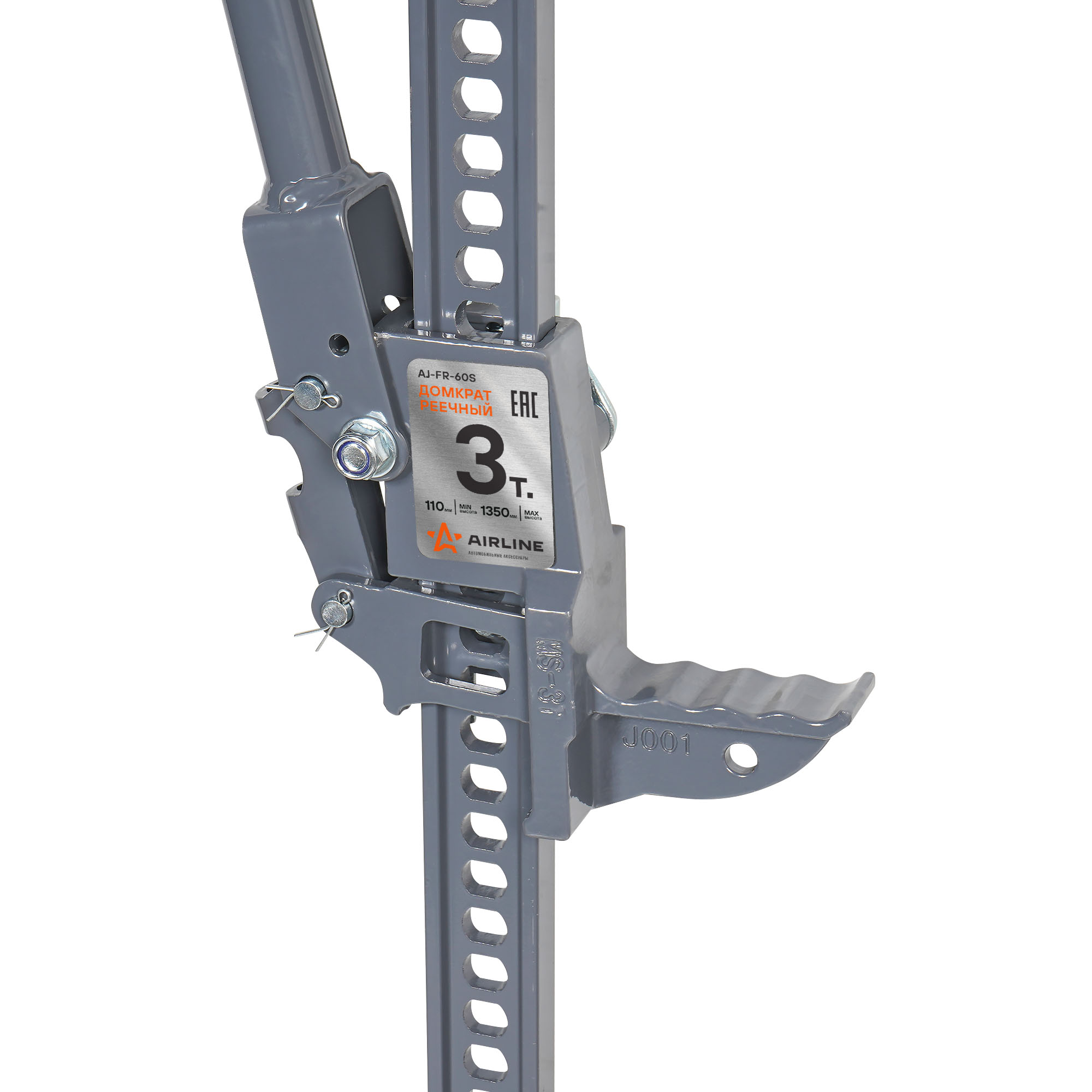 Реечный домкрат AIRLINE AJ-FR-60S позволяет поднимать и опускать грузы весом 3 т. Минимальная высота подъема - 110мм, максимальная - 1350мм. Домкрат выполнен из стали и чугуна, выдерживает работу в условиях повышенных нагрузок. Применяется для подъёма транспортных средств и перемещения грузов. Шаговый механизм позволяет произвести подъём груза и точную установку на заданной высоте. Нижний захват расположен под углом 90° с целью поднятия груза с небольшой высоты. Для удержания груза на заданной высоте, используется стопорное устройство. Основным применением является подъём транспортных средств в условиях бездорожья, а также в качестве лебедки или стягивающего устройства. Может использоваться при ремонтных, монтажно-демонтажных и строительных работ. На СТО отлично выполняет функцию поднятия части авто с целью замены колеса или проведения ремонтных и профилактических работ.