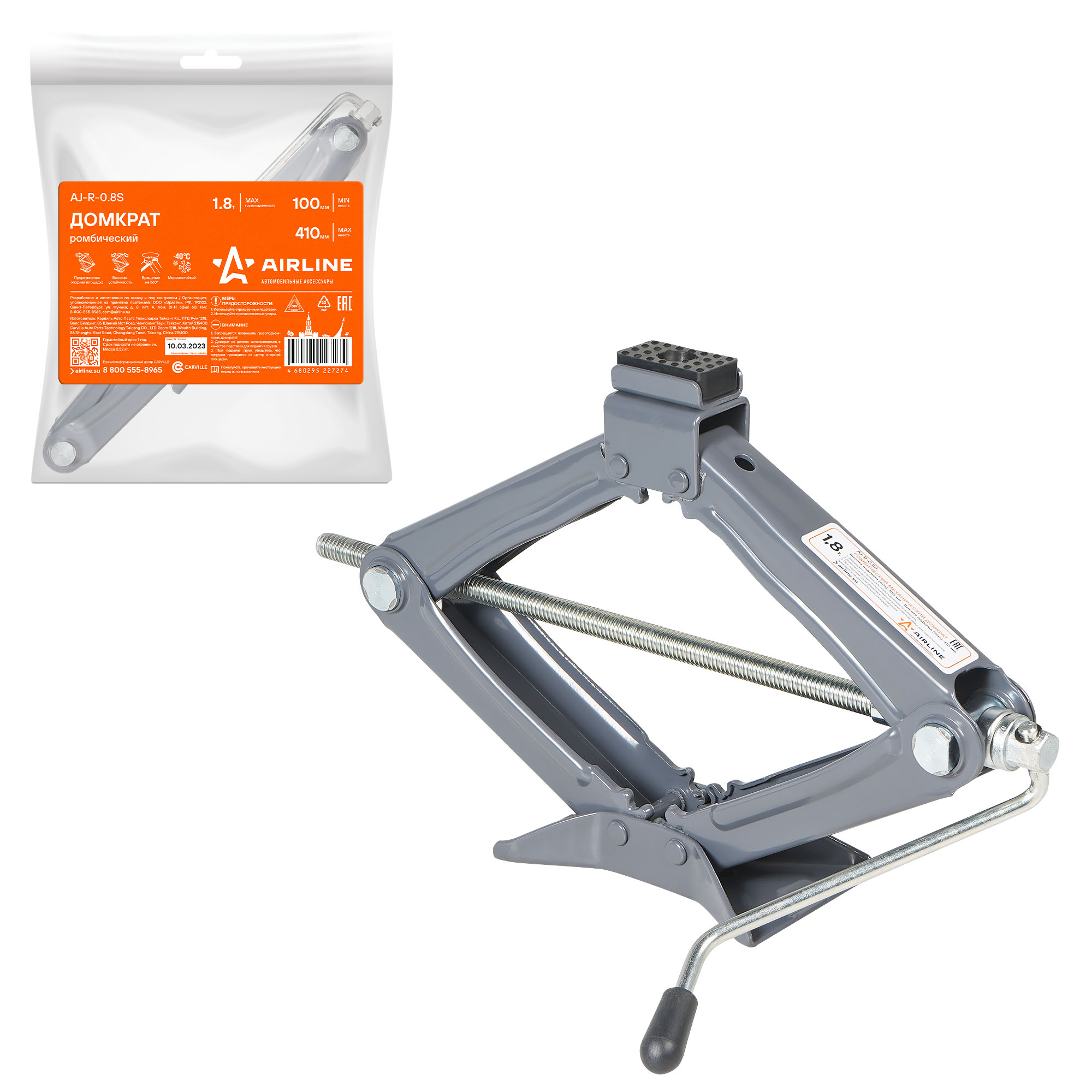 Домкрат ромбический — это доступная возможность произвести ремонтные работы в полевых условиях. Обычно именно таким типом домкрата комплектуются легковые машины на конвейере. Он имеет небольшой вес, минимальную высоту подхвата и максимальную высоту подъема (до 514 мм. - рекорд). При этом он может храниться в любом месте и в любом положении. Не требует дополнительного ухода или обслуживания. Главными достоинствами домкратов AIRLINE является высота подъема и прорезиненная верхняя упорная площадка (седло).