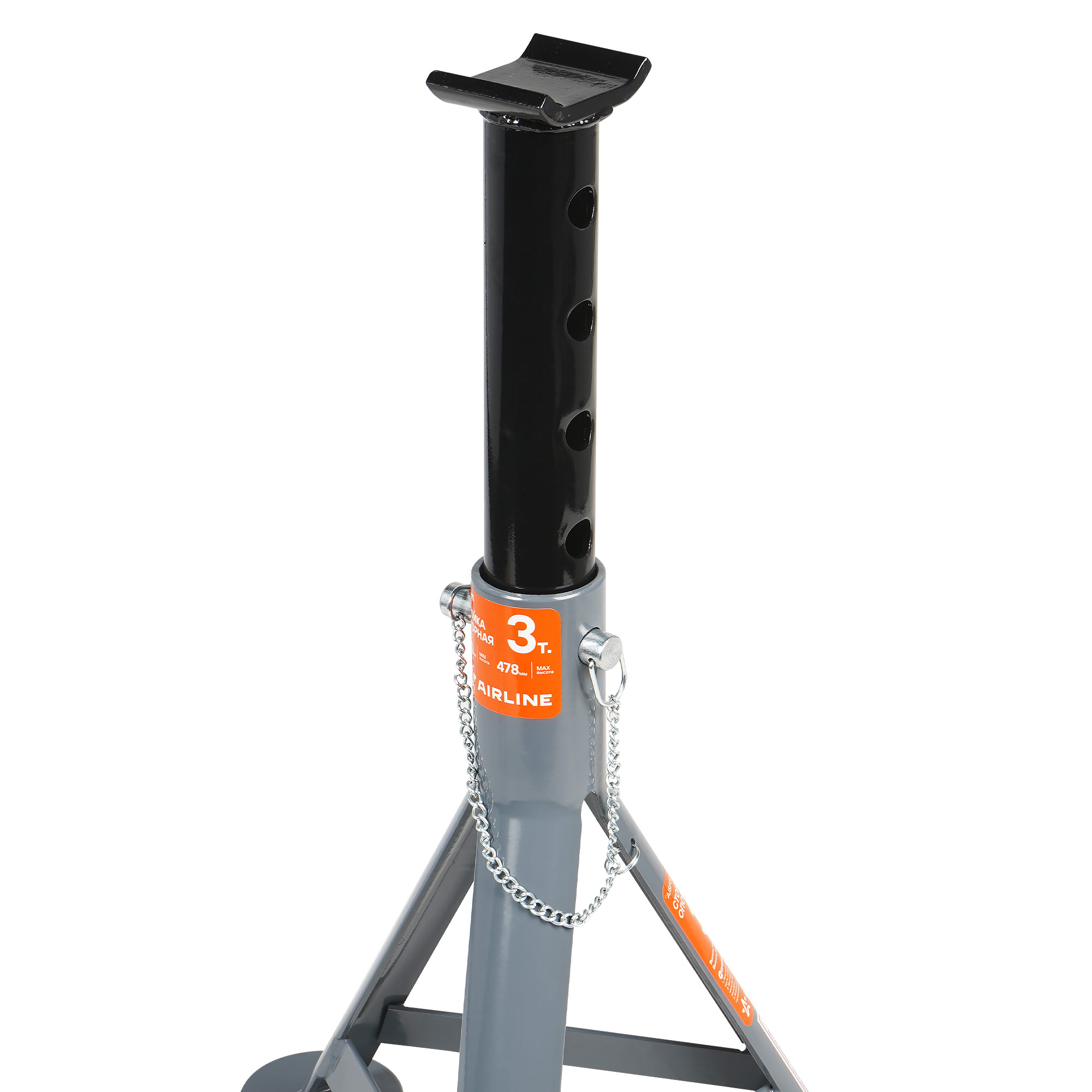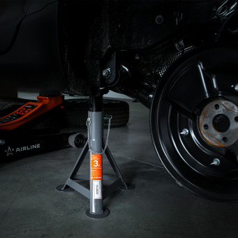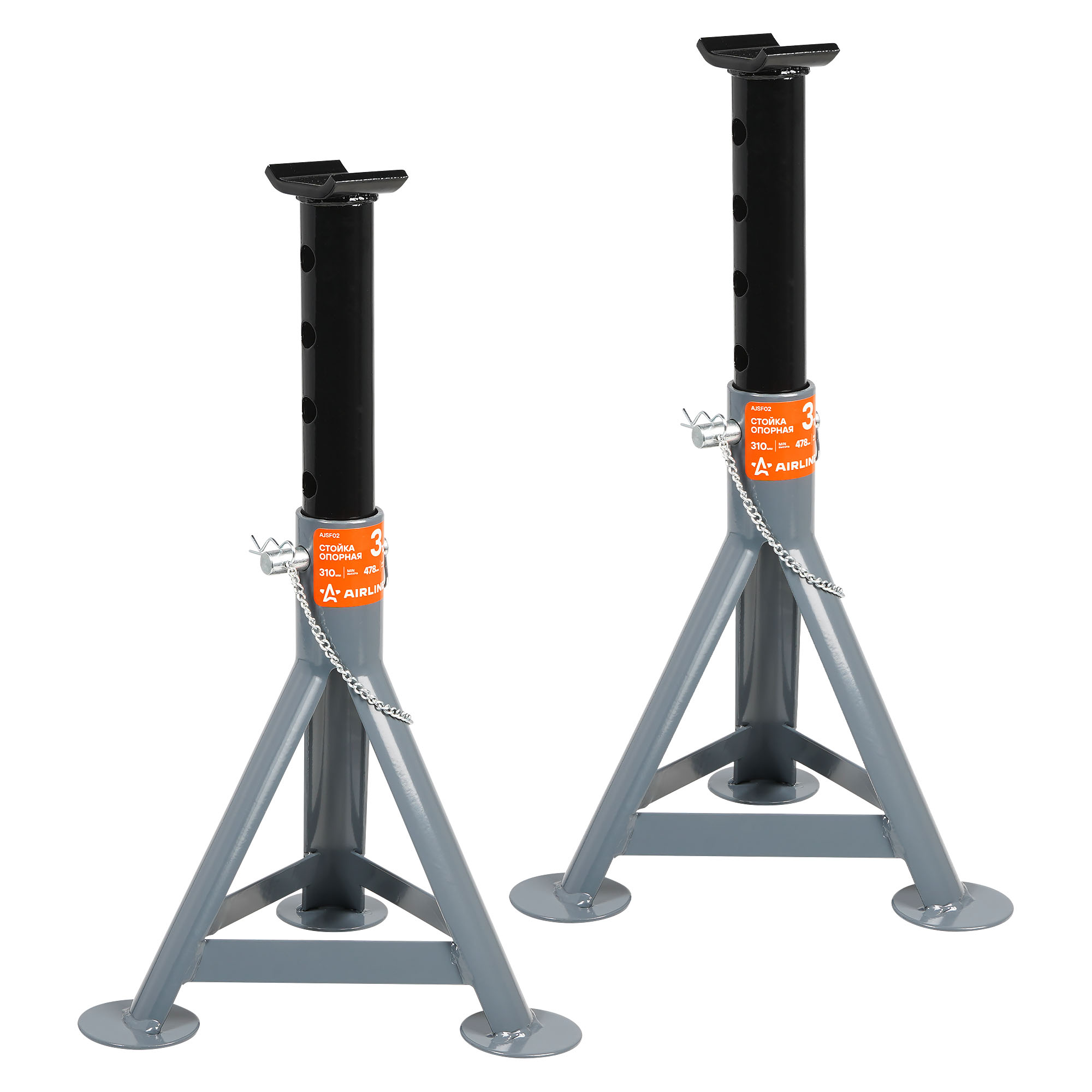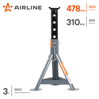 Опорная стойка с пальцевым механизмом AIRLINE 3т, MIN-310 мм, MAX-478 мм применяется как средство страховки и удержания автомобиля на заданной высоте. Стойки устанавливаются под автомобиль в определенных точках (под осями или под специальными площадками на раме). Фиксация производится с помощью пальцевого механизма. В комплекте 2 стойки.