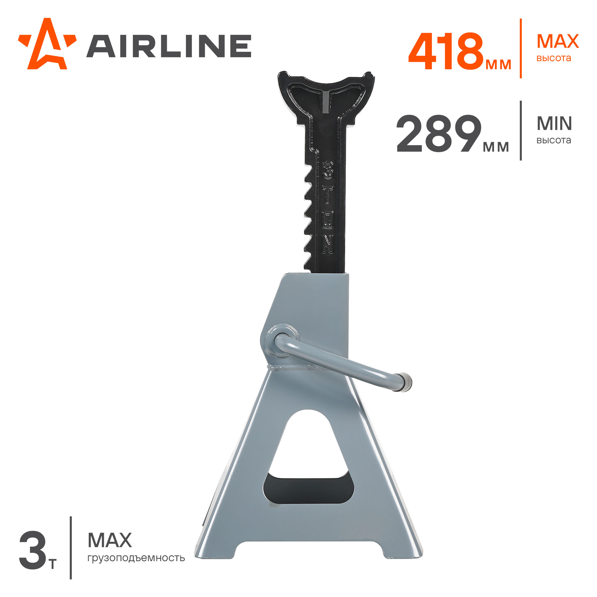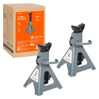 Стойка опорная AIRLINE 3 т, 289-418 мм применяется как средство страховки и удержания автомобиля на заданной высоте. Стойки подставляются под автомобиль в определенных точках (под осями или под специальными площадками на раме) и удерживают его на выбранном уровне. Простой и удобный в использовании зубчатый механизм, надежно регулирует и фиксирует авто. В комплекте находится 2 стойки.
