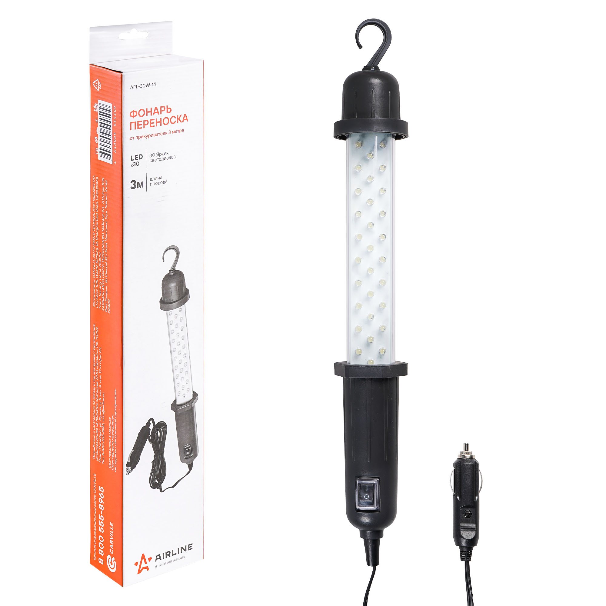 Фонарь-переноска модели LEDx30 от AIRLINE имеет стильный дизайн и высокие качественные показатели. Модель оснащена кабелем черного цвета длиной 3 метра. Для фиксирования фонаря в необходимом месте и положении предусмотрен крючок, размещенный в верхней части изделия. Изделие работает от розетки прикуривателя 12В.