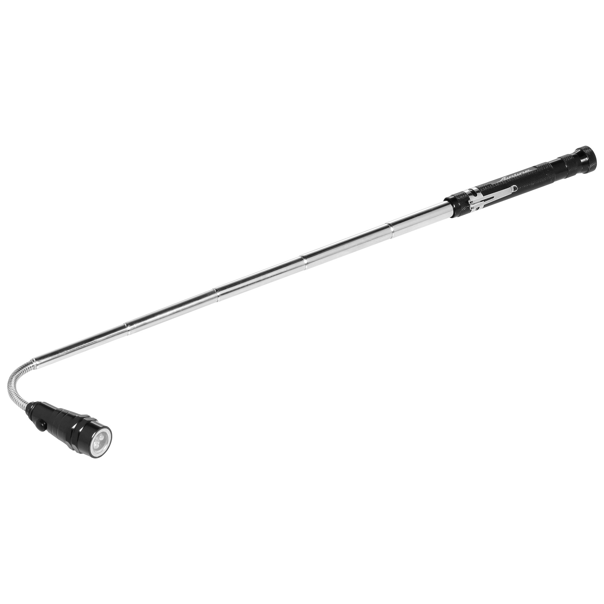 Универсальный фонарь помогает решить несколько задач. Крепится на магните к металлической поверхности. Оснащён тремя яркими светодиодами. Вытягивается до длины 550мм. Имеет гибкий наконечник с неодимовым магнитом, для извлечения крепежа из самых труднодоступных мест.