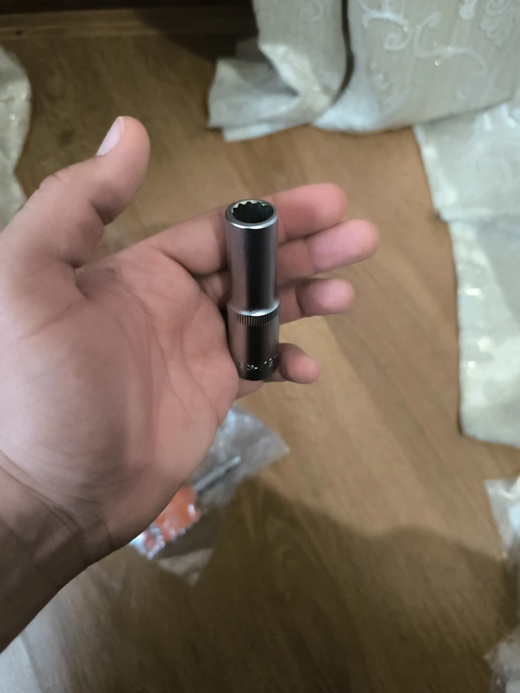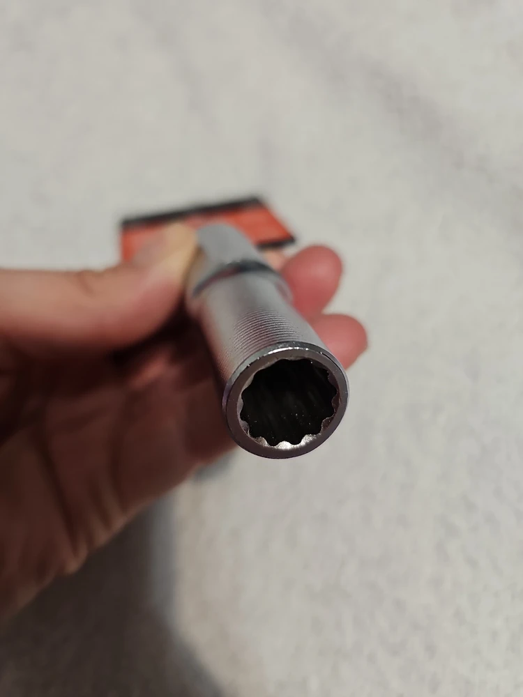 Достоинства: Головка торцевая глубокая 12-гранная 12 мм выполнена качественно. Сталь прочная и крепкая, хорошо сидит, не люфтит.