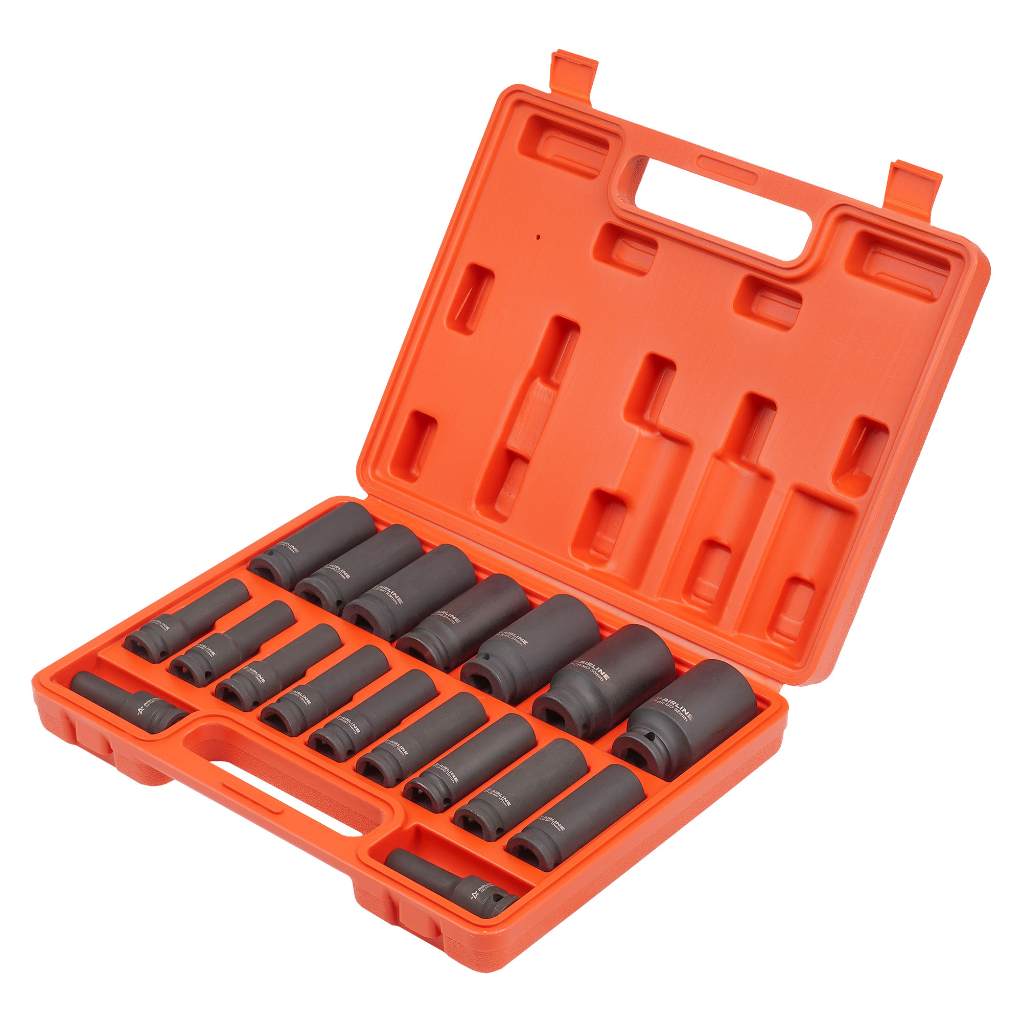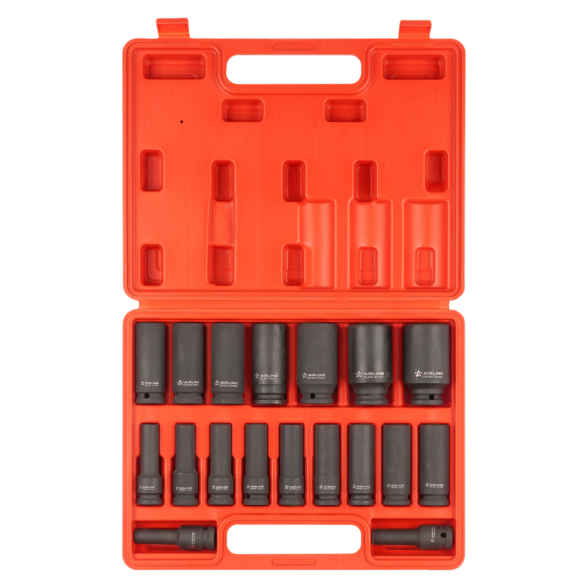 Набор головок шестигранных ударных применяется для монтажа/демонтажа крепежных элементов с помощью пневматического гайковерта.