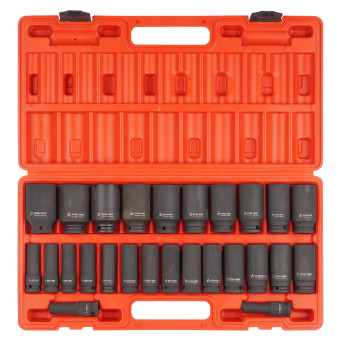 Набор головок шестигранных ударных применяется для монтажа/демонтажа крепежных элементов с помощью пневматического гайковерта.