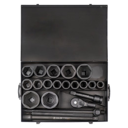 Набор головок ударных 1" 90мм 20 пр. (27-80мм, Т-вороток, трещотка, удлинитель) мет. кейс.