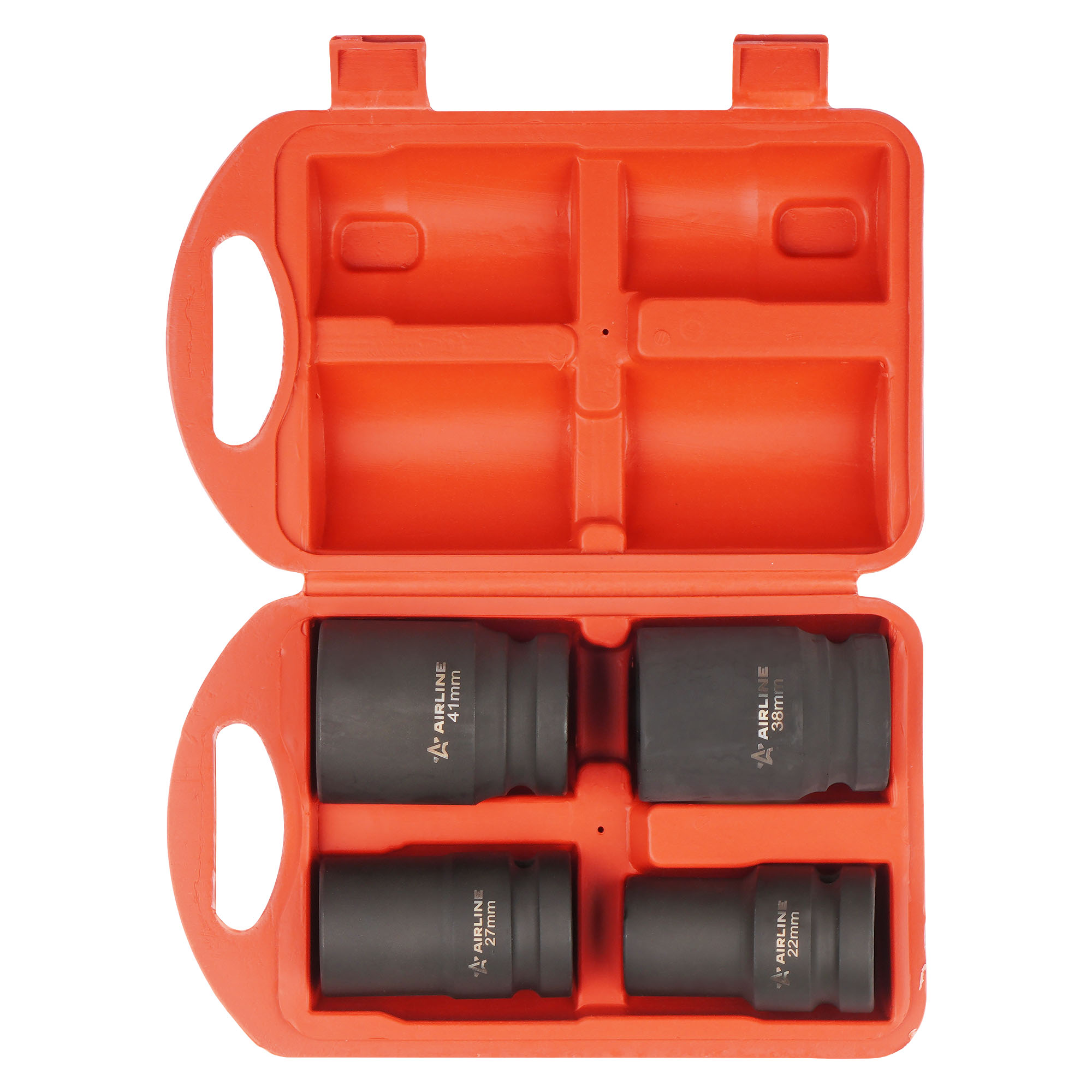 Набор головок шестигранных ударных применяется для монтажа/демонтажа крепежных элементов с помощью пневматического гайковерта.