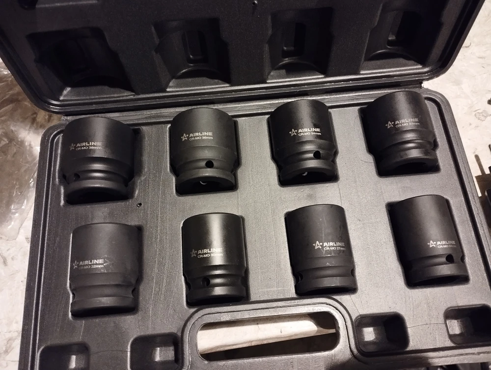 Набор головок шестигранных ударных применяется для монтажа/демонтажа крепежных элементов с помощью пневматического гайковерта.