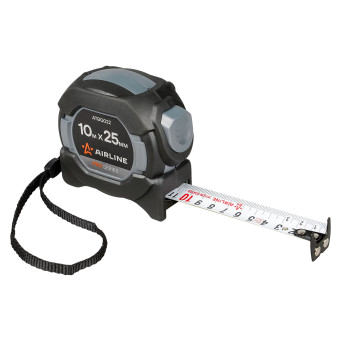 Рулетка AIRLINE ATBQ022 изготовлена из композитного прорезиненного ударопрочного пластика, корпус изделия имеет четыре точки крепления. Функция защиты пальца предотвращает возможность получения травмы при возвращении ленты в корпус. Специальный механизм самостоятельно блокирует положение ленты, при ее извлечении из корпуса. Изделие оснащено двухсторонним магнитным зацепом и двухсторонней шкалой, что обеспечивает универсальность и удобство при проведении измерений на различных поверхностях, в том числе металлических. Лента изделия имеет защитное нейлоновое покрытие, благодаря которому увеличивается сопротивление к коррозии, а также матовое антибликовое покрытие, которое обеспечивает комфортное считывание чисел со шкалы. Зацеп и клипса для ремня окрашены краской, что повышает их антикоррозийные свойства.