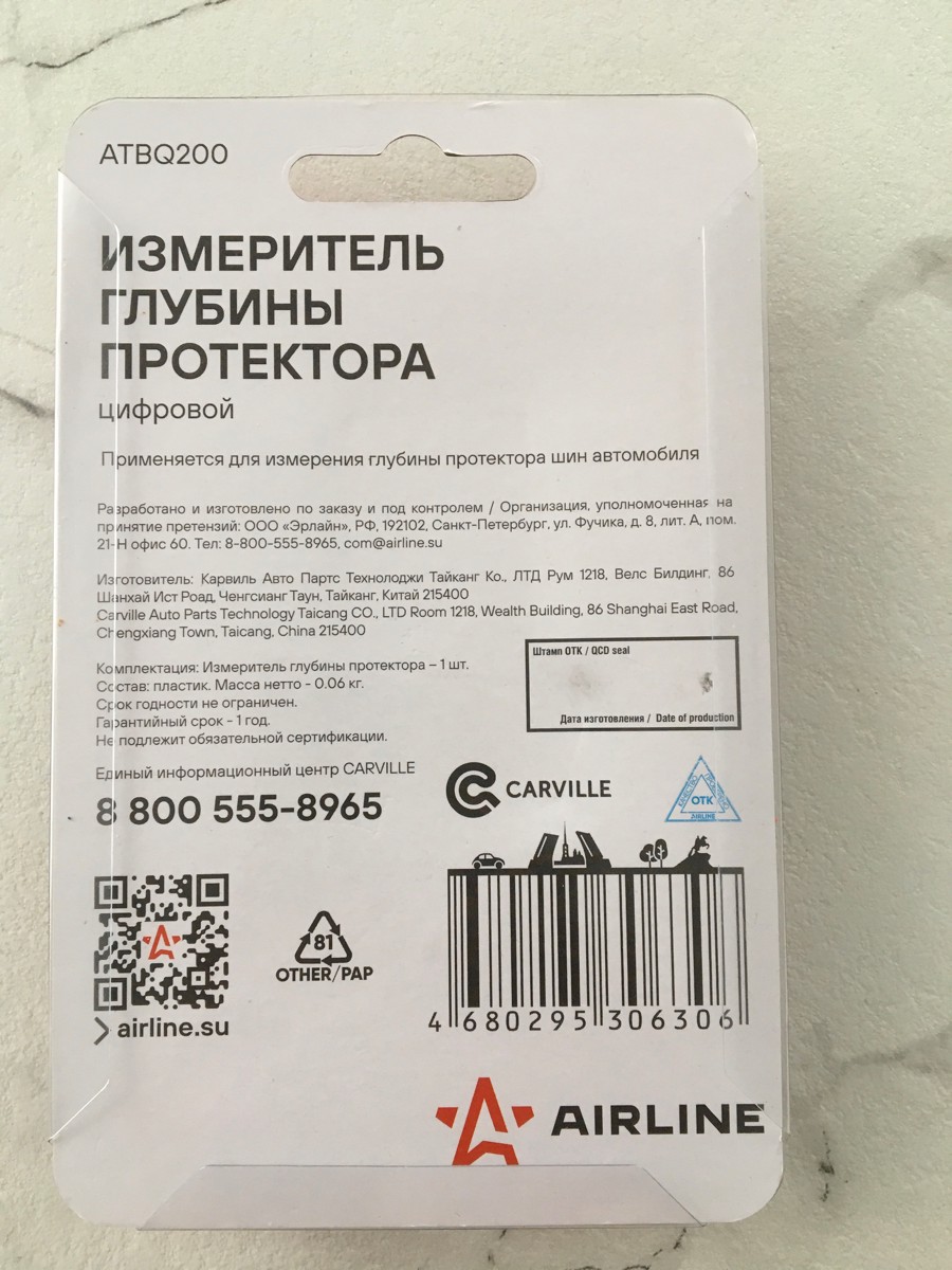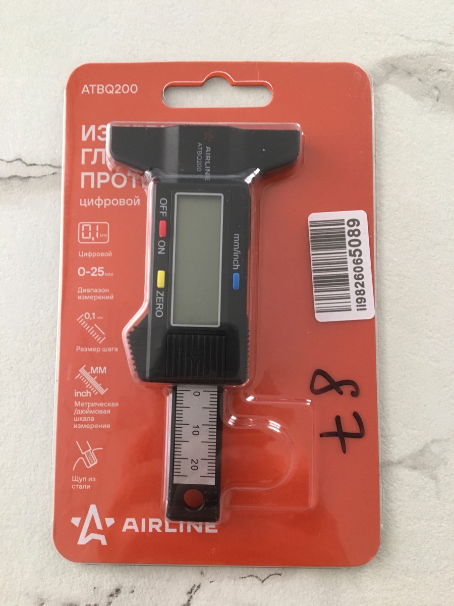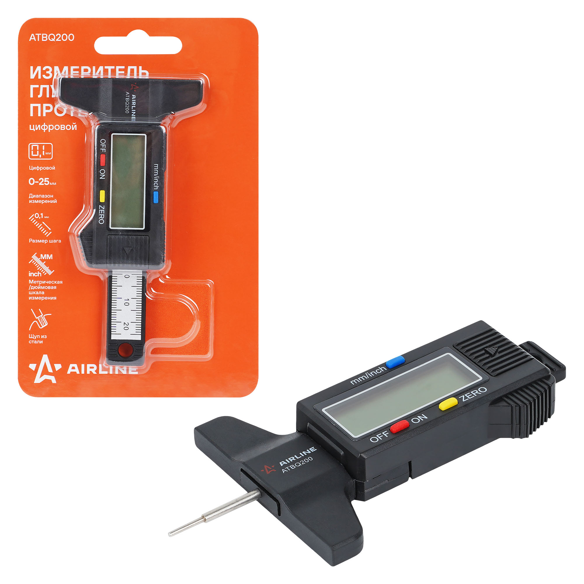 Цифровой измеритель глубины протектора шин AIRLINE ATBQ200 предназначен для определения степени износа шин. Обеспечивает высокую точность измерения до 0,1 мм. Данный измеритель удобен в эксплуатации и может успешно использоваться на СТО, шиномонтаже или автовладельцами в домашних условиях. Питание производится от батареи LR44 AG13. Информация отображается на увеличенном ЖК-дисплее.