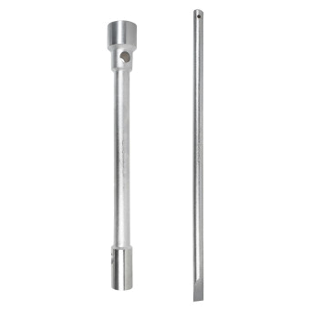 Ключ баллонный серии PRO изготовлен из высокопрочной Cr-V стали. Имеет повышенный запас прочности. Предназначен для монтажа/демонтажа резьбовых соединений при замене колес на грузовых автомобилях, автобусах и спецтехники. Универсальность данного баллонного ключа заключается в наличии 2 размеров и воротка для возможности применить дополнительный рычаг. Абсолютно все баллонные ключи производятся по единой технологии на современных автоматизированных предприятиях. Тестирование каждого ключа происходит в собственной испытательной лаборатории, что является залогом качества и надежности.