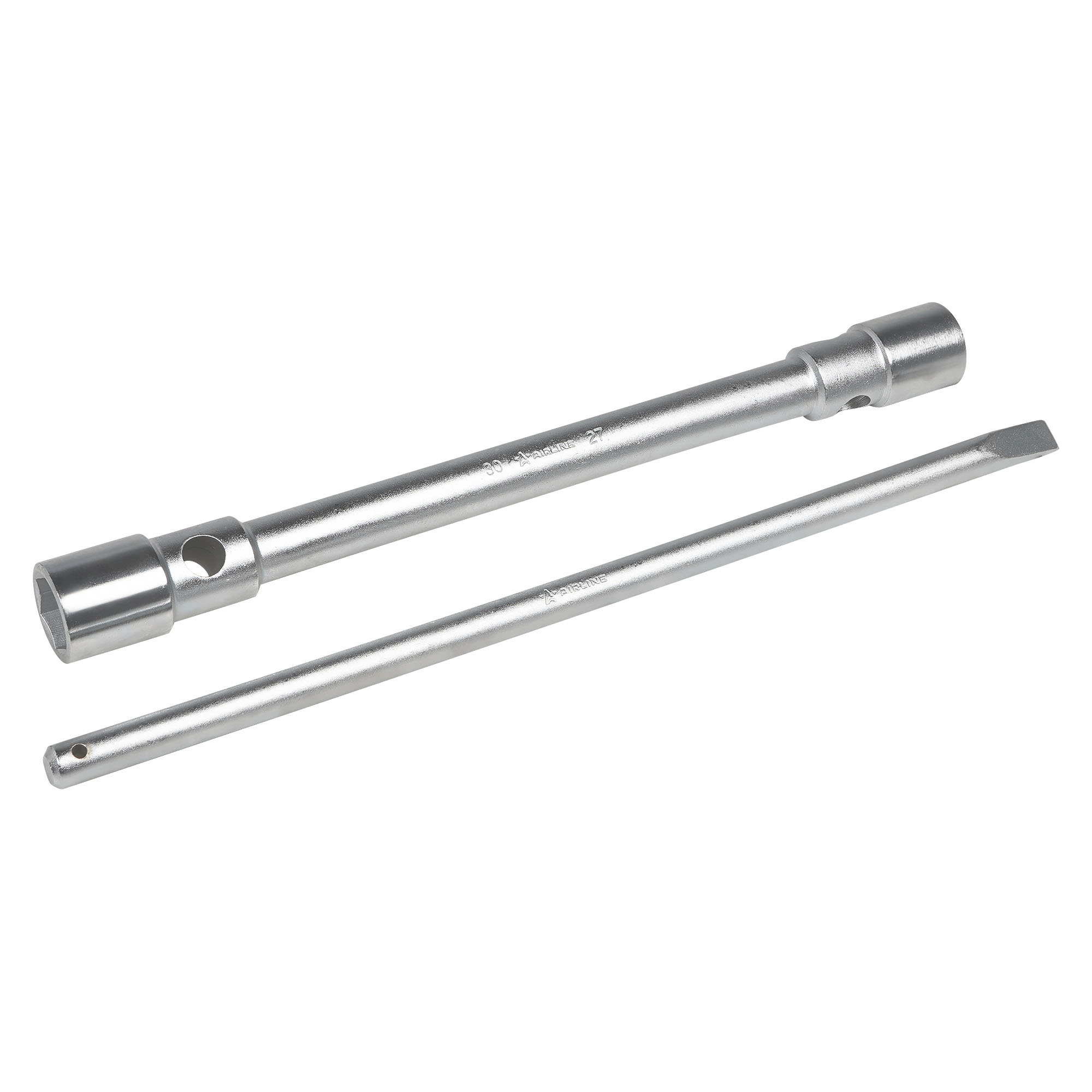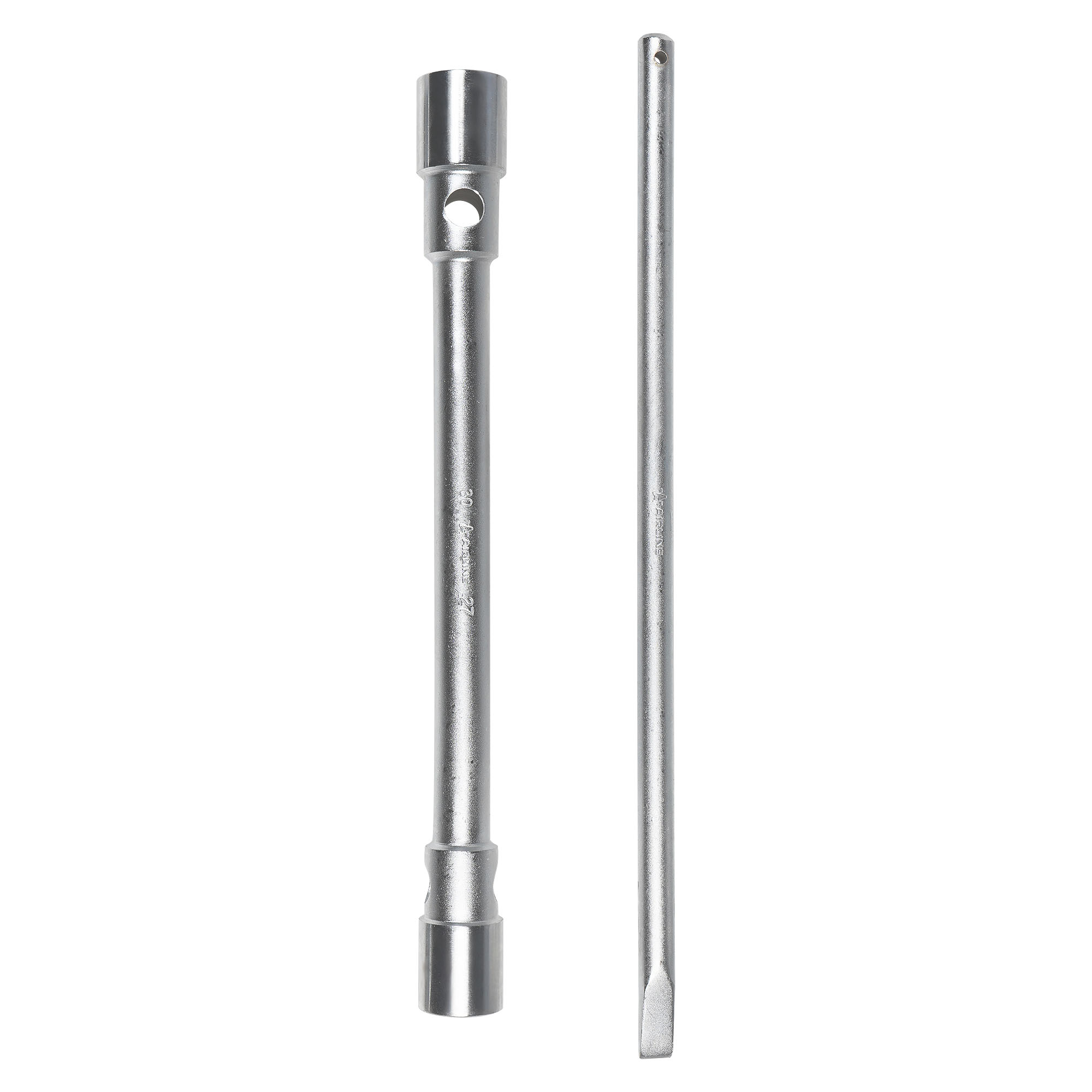 Ключ баллонный серии PRO изготовлен из высокопрочной Cr-V стали. Имеет повышенный запас прочности. Предназначен для монтажа/демонтажа резьбовых соединений при замене колес на грузовых автомобилях, автобусах и спецтехники. Универсальность данного баллонного ключа заключается в наличии 2 размеров и воротка для возможности применить дополнительный рычаг. Абсолютно все баллонные ключи производятся по единой технологии на современных автоматизированных предприятиях. Тестирование каждого ключа происходит в собственной испытательной лаборатории, что является залогом качества и надежности.