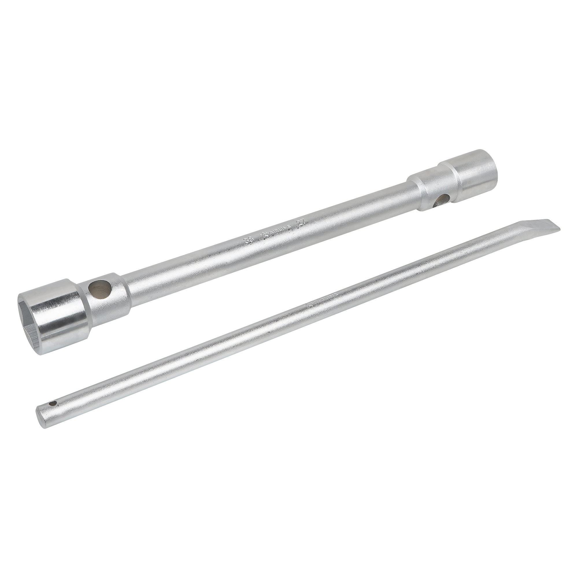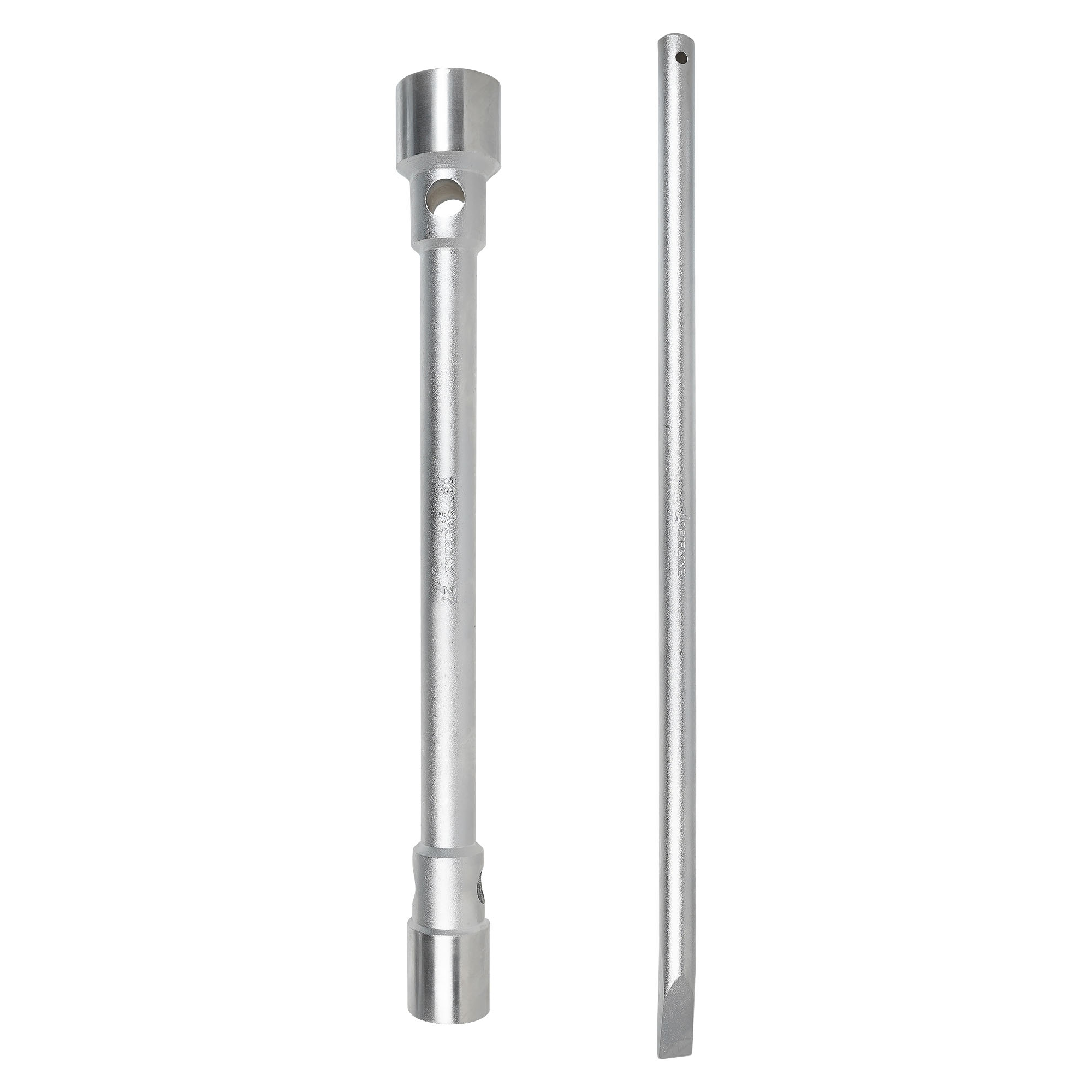 Ключ баллонный серии PRO изготовлен из высокопрочной Cr-V стали. Имеет повышенный запас прочности. Предназначен для монтажа/демонтажа резьбовых соединений при замене колес на грузовых автомобилях, автобусах и спецтехники. Универсальность данного баллонного ключа заключается в наличии 2 размеров и воротка для возможности применить дополнительный рычаг. Абсолютно все баллонные ключи производятся по единой технологии на современных автоматизированных предприятиях. Тестирование каждого ключа происходит в собственной испытательной лаборатории, что является залогом качества и надежности.