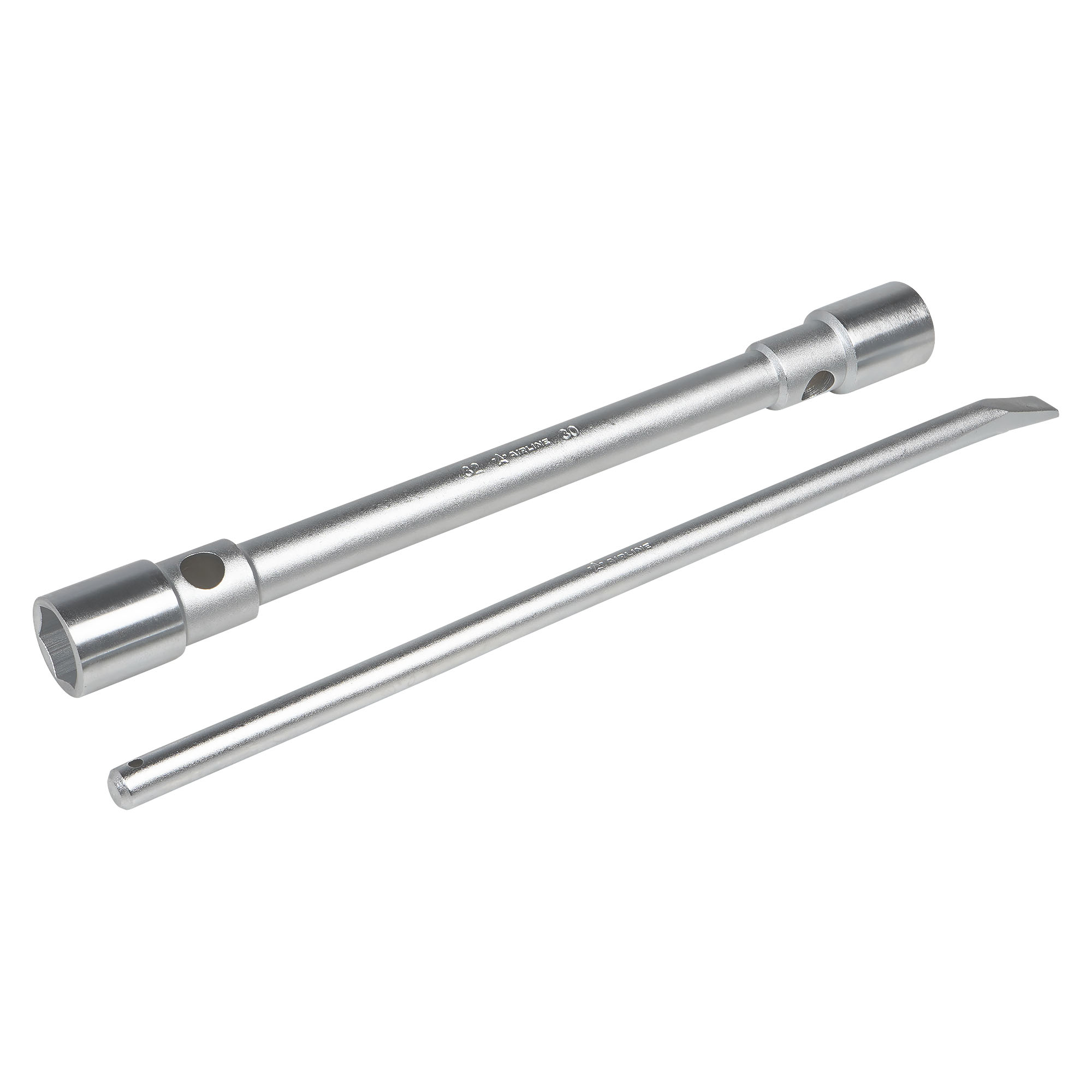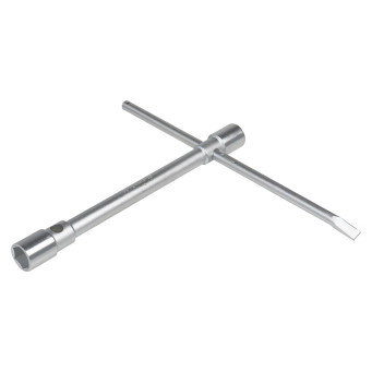 Ключ баллонный серии PRO изготовлен из высокопрочной Cr-V стали. Имеет повышенный запас прочности. Предназначен для монтажа/демонтажа резьбовых соединений при замене колес на грузовых автомобилях, автобусах и спецтехники. Универсальность данного баллонного ключа заключается в наличии 2 размеров и воротка для возможности применить дополнительный рычаг. Абсолютно все баллонные ключи производятся по единой технологии на современных автоматизированных предприятиях. Тестирование каждого ключа происходит в собственной испытательной лаборатории, что является залогом качества и надежности.