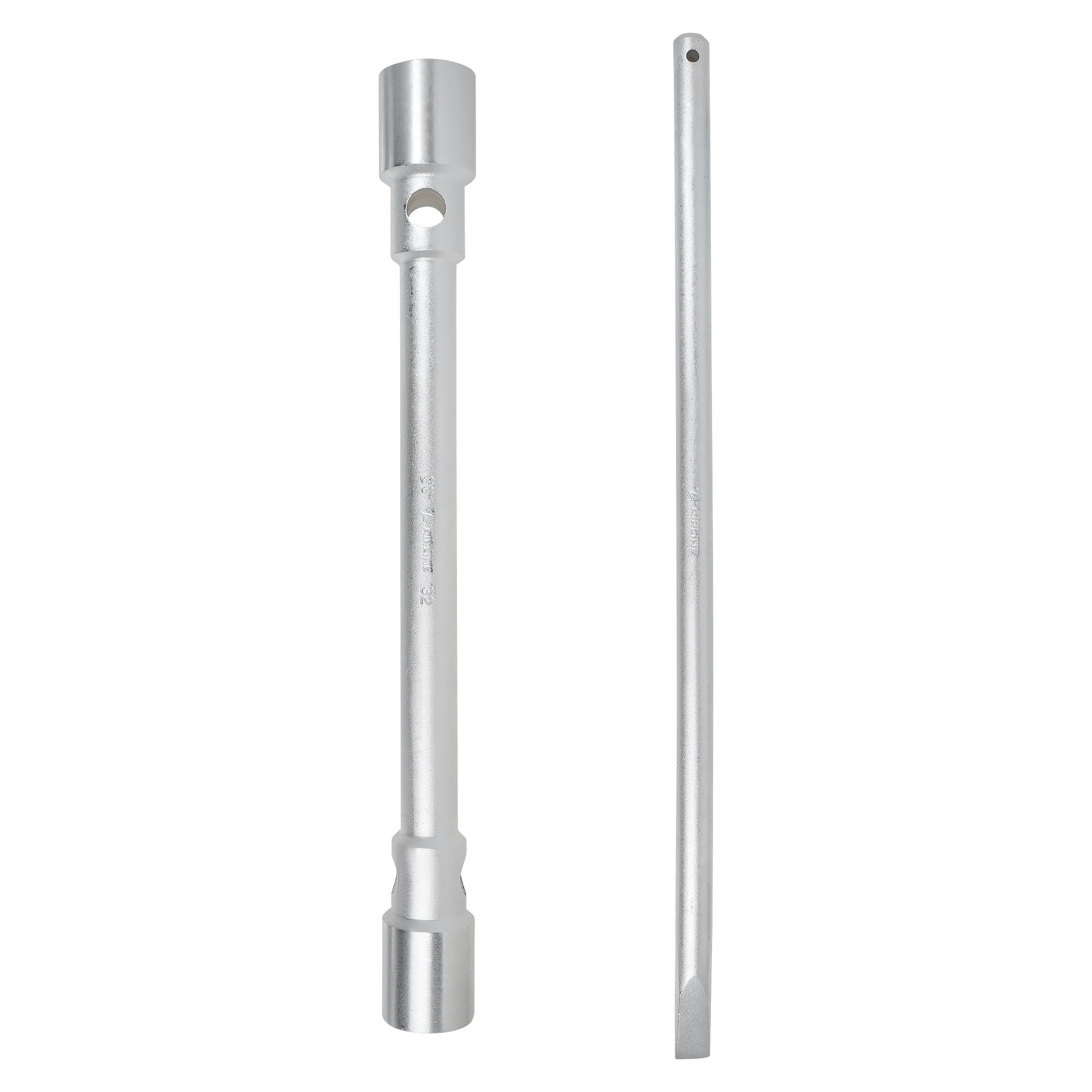 Ключ баллонный серии PRO изготовлен из высокопрочной Cr-V стали. Имеет повышенный запас прочности. Предназначен для монтажа/демонтажа резьбовых соединений при замене колес на грузовых автомобилях, автобусах и спецтехники. Универсальность данного баллонного ключа заключается в наличии 2 размеров и воротка для возможности применить дополнительный рычаг. Абсолютно все баллонные ключи производятся по единой технологии на современных автоматизированных предприятиях. Тестирование каждого ключа происходит в собственной испытательной лаборатории, что является залогом качества и надежности.
