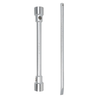 Ключ баллонный серии PRO изготовлен из высокопрочной Cr-V стали. Имеет повышенный запас прочности. Предназначен для монтажа/демонтажа резьбовых соединений при замене колес на грузовых автомобилях, автобусах и спецтехники. Универсальность данного баллонного ключа заключается в наличии 2 размеров и воротка для возможности применить дополнительный рычаг. Абсолютно все баллонные ключи производятся по единой технологии на современных автоматизированных предприятиях. Тестирование каждого ключа происходит в собственной испытательной лаборатории, что является залогом качества и надежности.