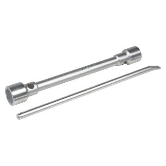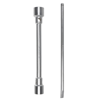 Ключ баллонный серии PRO изготовлен из высокопрочной Cr-V стали. Имеет повышенный запас прочности. Предназначен для монтажа/демонтажа резьбовых соединений при замене колес на грузовых автомобилях, автобусах и спецтехники. Универсальность данного баллонного ключа заключается в наличии 2 размеров и воротка для возможности применить дополнительный рычаг. Абсолютно все баллонные ключи производятся по единой технологии на современных автоматизированных предприятиях. Тестирование каждого ключа происходит в собственной испытательной лаборатории, что является залогом качества и надежности.