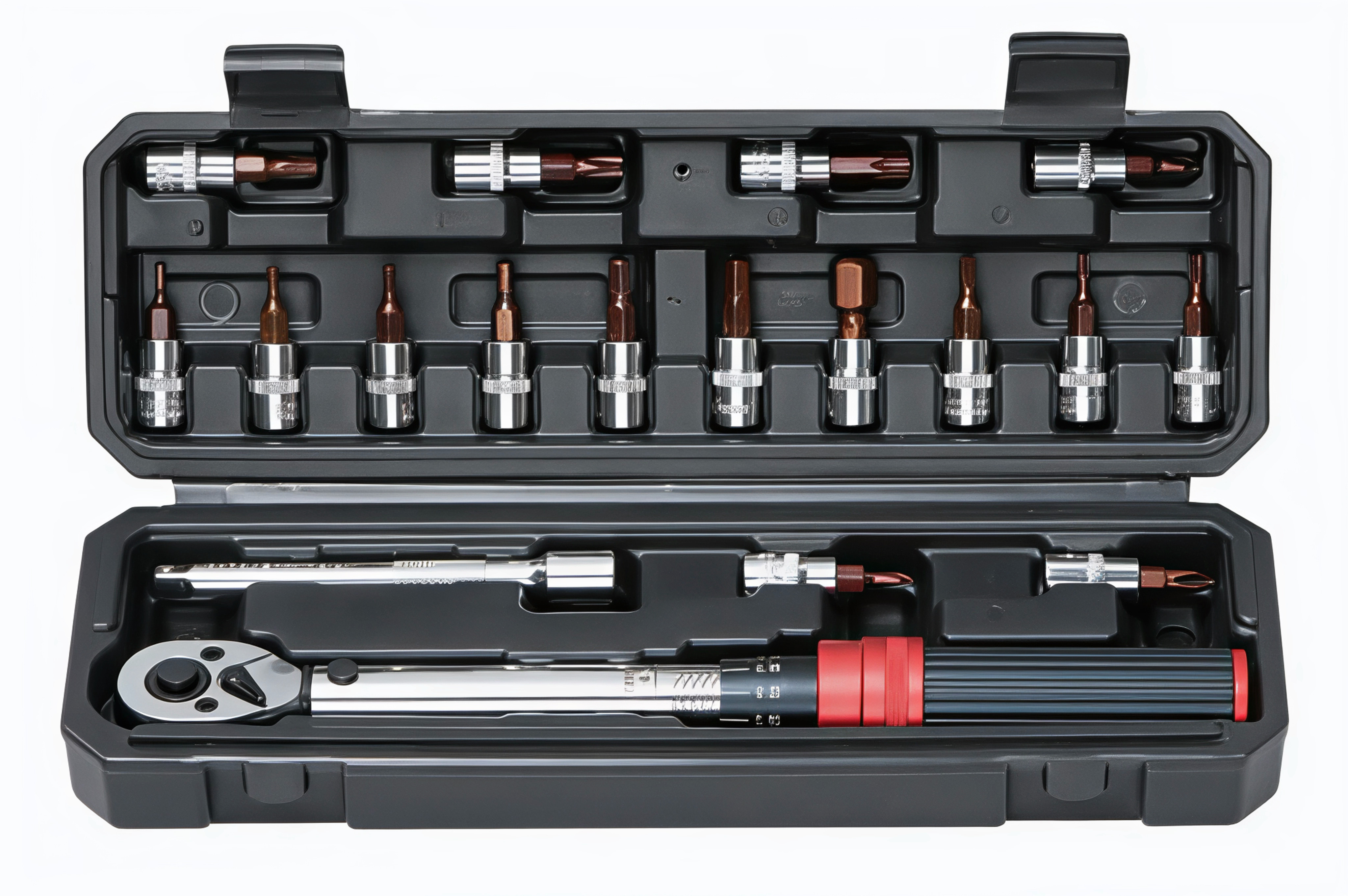 Ключ динамометрический 1/4" 5-25Нм PRO, набор 18пр (головки со вставками, удл 100мм), кейс