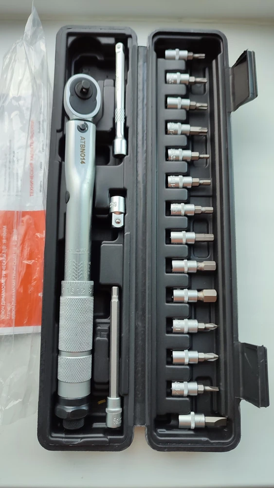 Динамометрический ключ отличного качества. В комплекте удлинители и насадки. Можно смело рекомендовать к покупке.