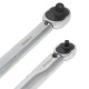 Ключ изготовлен из высококачественной стали, что придает увеличенный рабочий ресурс и надежность в эксплуатации. Металлическая рукоятка имеет шероховатую поверхность для надежной фиксации в руке и предотвращения проскальзывания. Прочный храповый механизм выполнен из закаленного сплава хроммолибденовой стали. Финишное прочное хромированное покрытие защищает ключ от воздействия коррозии, делает его более износостойким.
