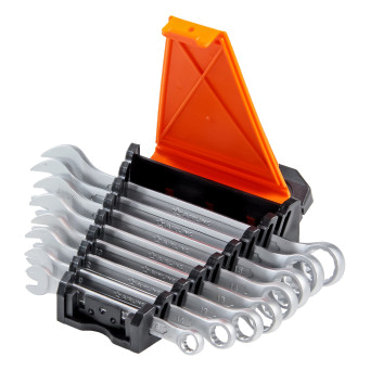 Ключи комбинированные серии PRO изготовлены из высококачественной Cr-V стали, отличаются высоким запасом прочности, износостойкостью и долговечностью эксплуатации. Способны выдерживать самые интенсивные нагрузки при непрерывной длительной работе. Финишное хромированное покрытие защищает ключ от воздействия коррозии. Эргономичный рукоятка развивает большее усилие без риска повреждения кистей рук. Продуманный профиль накидной части ключа предотвращает повреждение болтов и гаек, даже при самых высоких нагрузках. Абсолютно все ключи производятся по единой технологии на современных автоматизированных предприятиях. Тестирование каждого ключа происходит в собственной испытательной лаборатории в два этапа, что является залогом качества. Надежные и прочные ключи серии PRO станут незаменимым инструментом для любого профессионала.