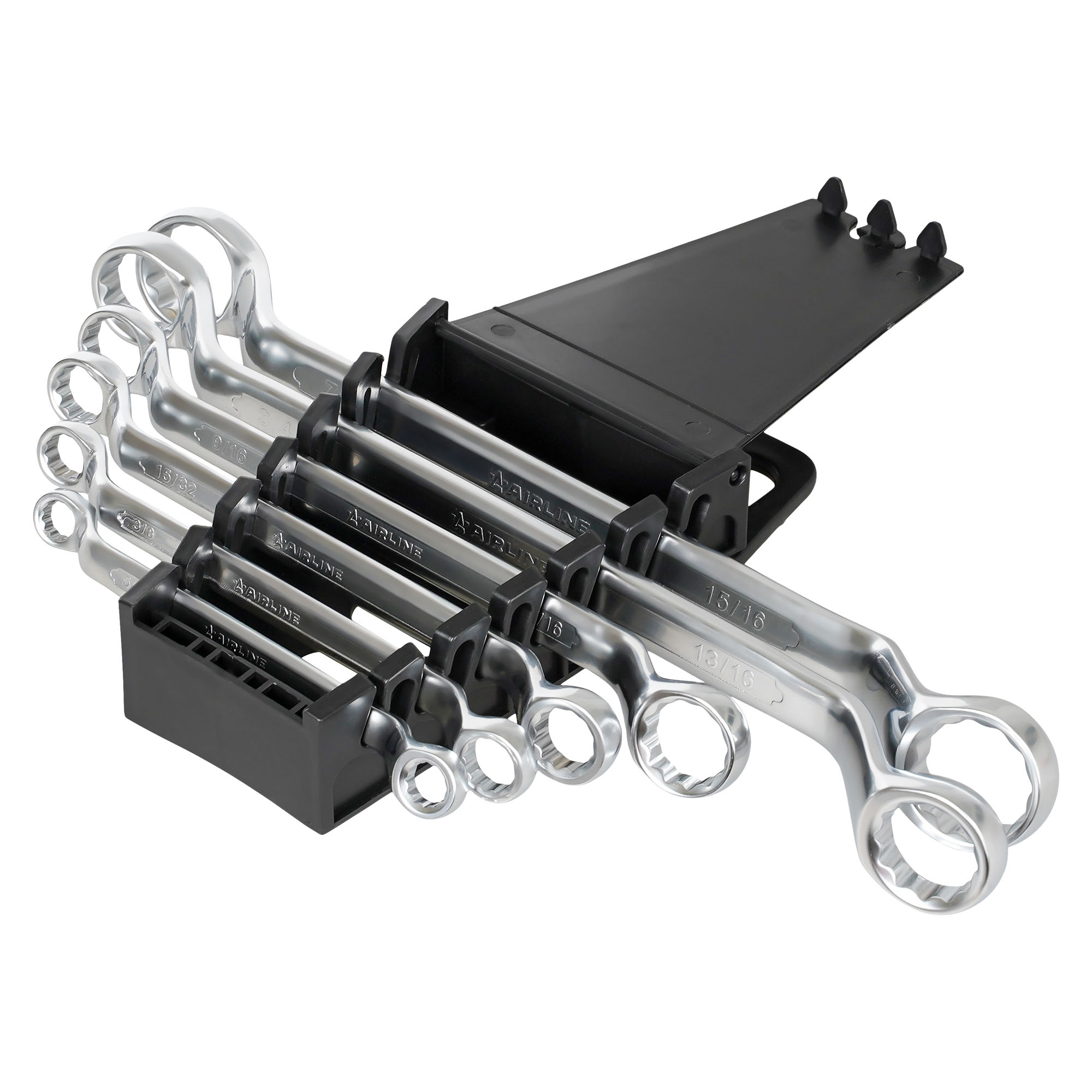 Ключи накидные с изгибом серии PRO изготовлены из высококачественной хромованадиевой стали, отличаются высоким запасом прочности, износостойкостью и долговечностью эксплуатации. Способны выдерживать самые интенсивные нагрузки при непрерывной длительной работе. Финишное хромированное покрытие защищает ключ от воздействия коррозии. Эргономичный рукоятка развивает большее усилие без риска повреждения кистей рук. Продуманный профиль накидной части ключа предотвращает повреждение болтов и гаек, даже при самых высоких нагрузках. Абсолютно все ключи производятся по единой технологии на современных автоматизированных предприятиях. Тестирование каждого ключа происходит в собственной испытательной лаборатории в два этапа, что является залогом качества. Надежные и прочные ключи серии PRO станут незаменимым инструментом для любого профессионала.
