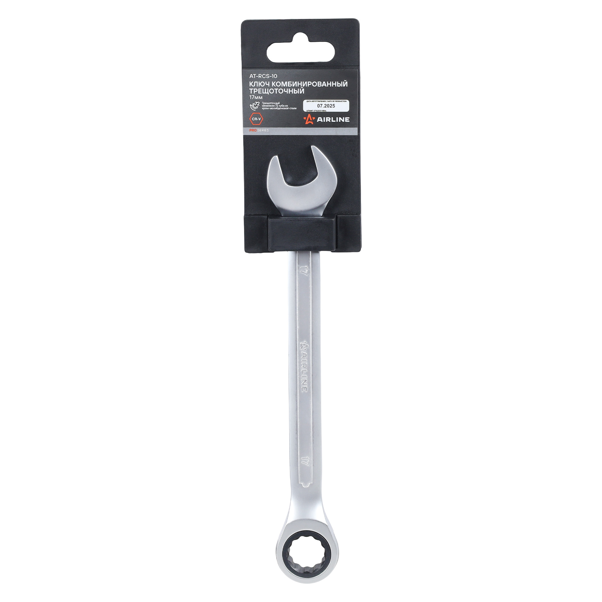 Ключ комбинированный трещоточный 17мм PRO, пласт.подвес