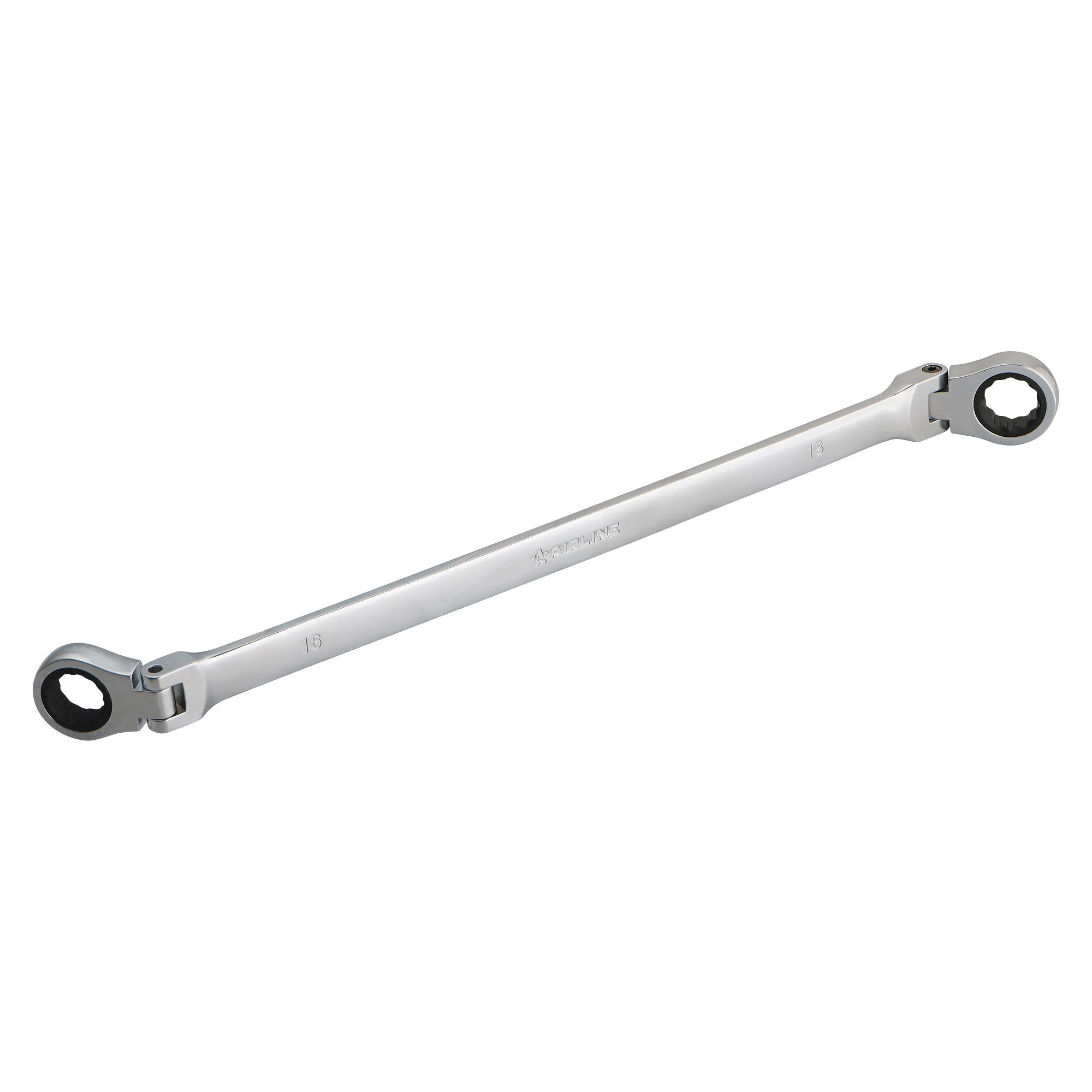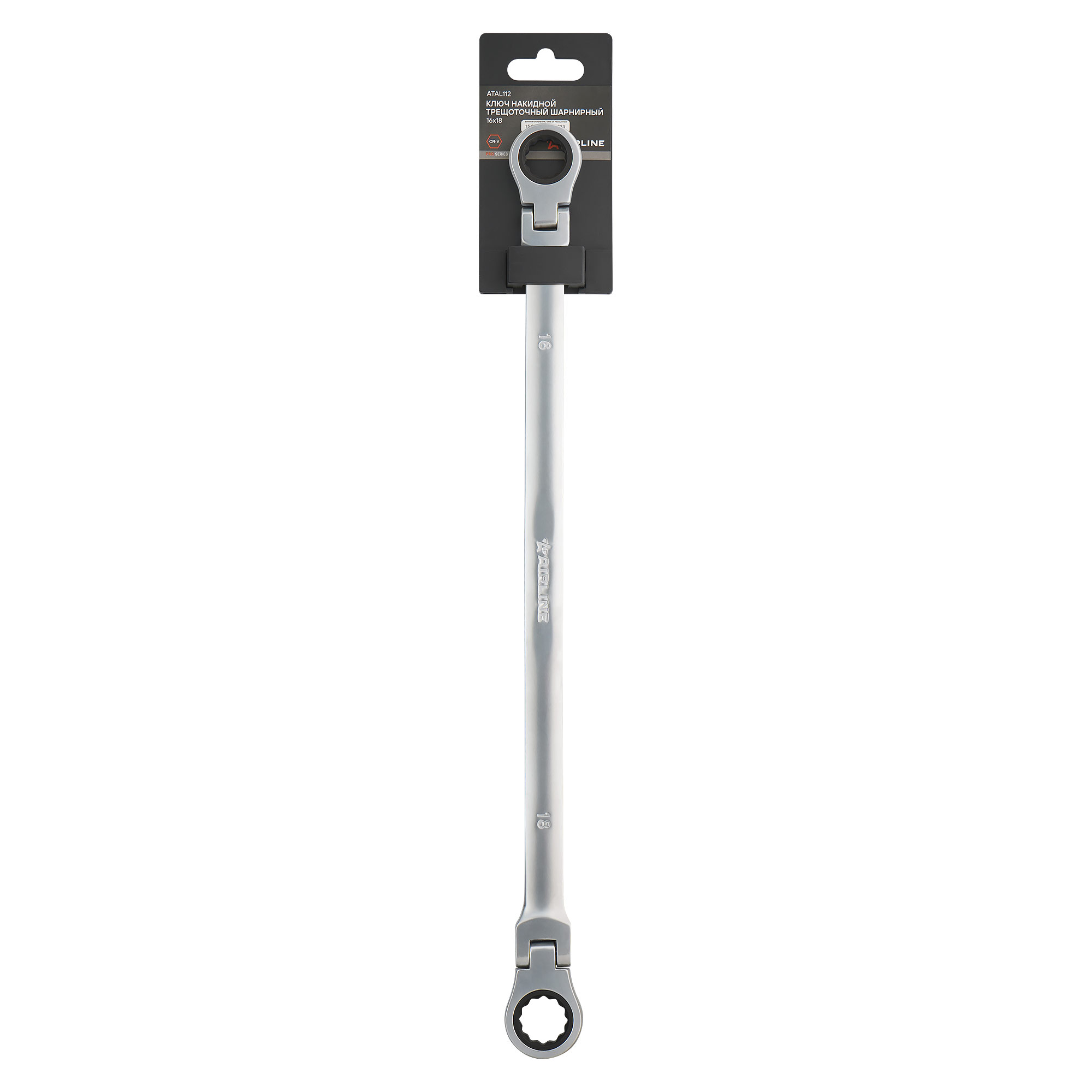 Ключ накидной трещоточный шарнирный 16х18 пласт. подвес PRO