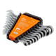 Ключи трещоточные серии PRO изготовлены из высококачественной хром-ванадиевой стали, отличаются высоким запасом прочности, износостойкостью и долговечностью эксплуатации. Способны выдерживать самые интенсивные нагрузки при непрерывной длительной работе. Специальный трещоточный механизм в 72 зуба изготовлен из 50BV30 стали способен выдерживать высокие нагрузки, позволяя работать в труднодоступных местах. Финишное хромированное покрытие защищает ключ от воздействия коррозии. Эргономичный рукоятка развивает большее усилие без риска повреждения кистей рук. Продуманный профиль накидной части ключа предотвращает повреждение болтов и гаек, даже при самых высоких нагрузках. Абсолютно все ключи производятся по единой технологии на современных автоматизированных предприятиях. Тестирование каждого ключа происходит в собственной испытательной лаборатории, что является залогом качества. Надежные и прочные ключи серии PRO станут незаменимым инструментом для любого профессионала.