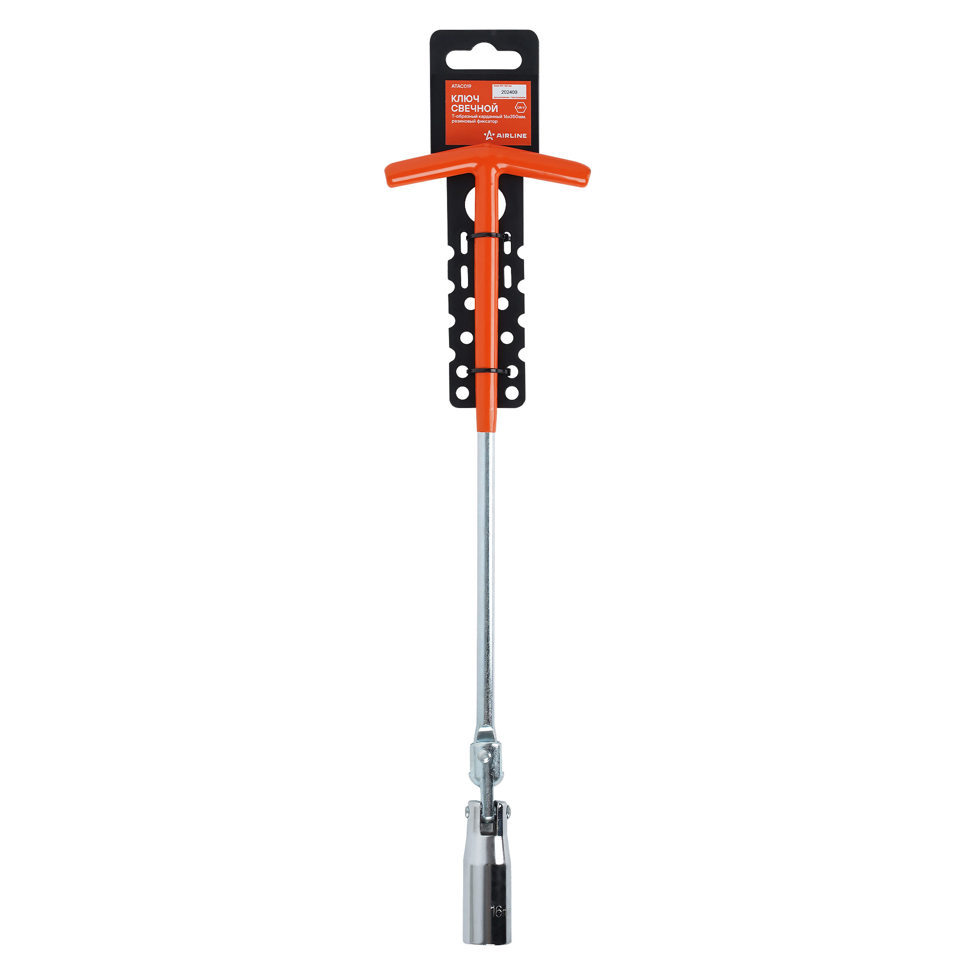 Ключ свечной Т-образный с карданом 16x350мм с резиновым фиксатором
