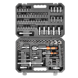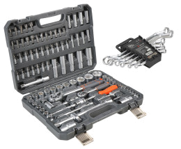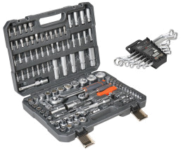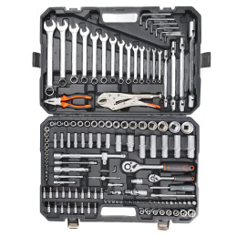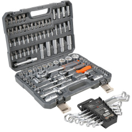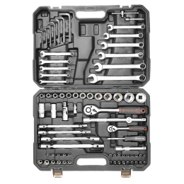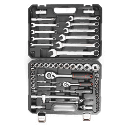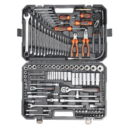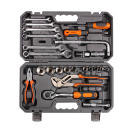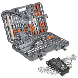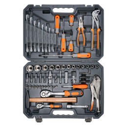 В каталоге представлены универсальные наборы инструментов, включающие в себя от 17 до 137 предметов. Упакованы они в серые или оранжевые пластиковые кейсы на защелках с пластиковой ручкой для удобного перемещения. Также есть набор инструментов в черной или оранжевой тканевой сумке, которую можно свернуть в рулон и застегнуть на липучку. Также есть подарочный набор с позолоченными ключами в деревянном кейсе.
