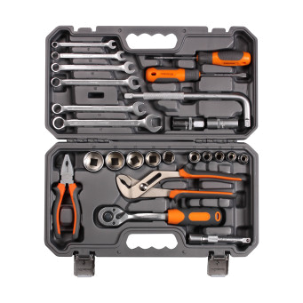 Инструменты изготовлены из высококачественной хром-ванадиевой стали. Металлические части изготовлены методом горячей ковки, что придаёт им высокую прочность и долговечность. Финишное прочное хромированное покрытие защищает Инструмент от воздействия коррозии, делает его более износостойким и легко очищается от загрязнений. Финишная обработка двух типов (частичная полировка) головок придаёт им отличный внешний вид.