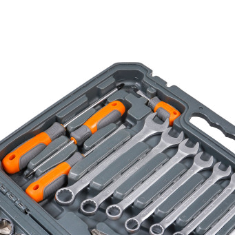 Инструменты изготовлены из высококачественной хром-ванадиевой стали. Металлические части изготовлены методом горячей ковки, что придаёт им высокую прочность и долговечность. Финишное прочное хромированное покрытие защищает Инструмент от воздействия коррозии, делает его более износостойким и легко очищается от загрязнений. Финишная обработка двух типов (частичная полировка) головок придаёт им отличный внешний вид.