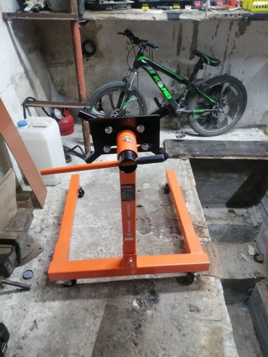 Кантователь для двигателя AIRLINE, грузоподъемностью 680 кг используется в автосервисах и мастерских для диагностических и ремонтных работ. Механизм вращения за счет изменения угла поворотного седла до 360 градусов обеспечивает легкий доступ ко всем узлам автомобильного двигателя. Стенд свободно перемещается по рабочей площадке благодаря наличию транспортировочных колесиков. В данной модели предусмотрены 4 поворотных колеса, которые обеспечивают его высокую мобильность