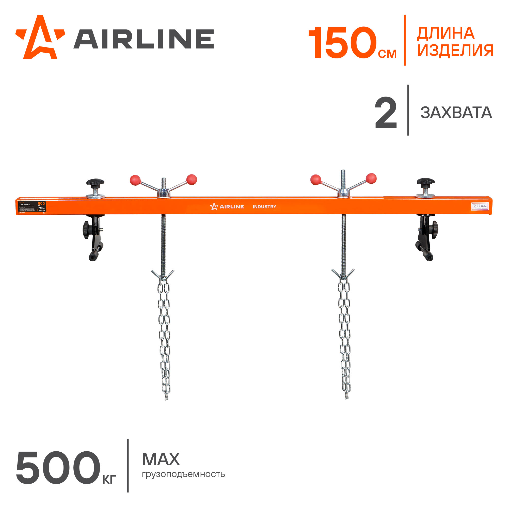 Траверса для вывешивания двигателей AIRLINE, грузоподъемностью 500 кг и длинною конструкции 1500 мм, предназначается для произведения ремонтных работ в условиях автосервисов и гаражей. Благодаря своей конструкции, позволяет заменять элементы двигателя без необходимости полного его извлечения. Опорные элементы специальной формы обеспечивают большую площадь соприкосновения, что гарантирует устойчивость конструкции.