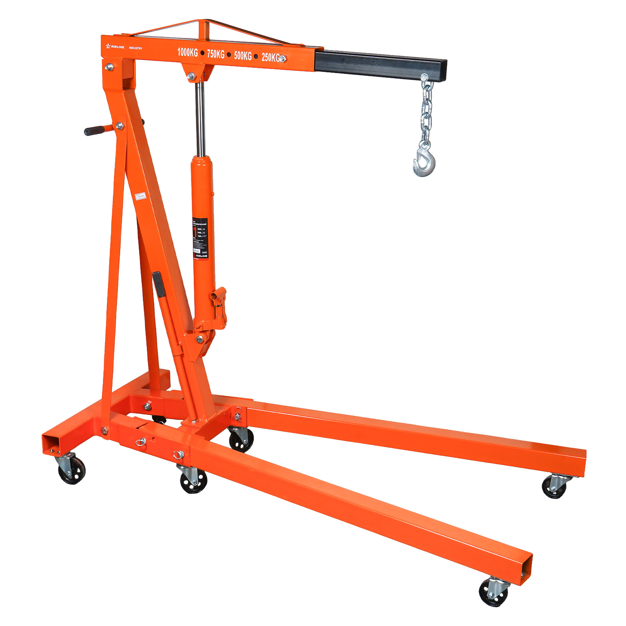 Гидравлический кран AIRLINE грузоподъемностью 1т это специализированное оборудование, предназначенное для подъёма, перемещения и установки тяжёлых автомобильных узлов и агрегатов, таких как двигатели и трансмиссии, в условиях станций технического обслуживания и автосервисов, гаражей. Кран изготовлен из толстолистовой стали, обеспечивающей надёжность и долговечность. Благодаря складной конструкции обеспечивает компактное хранение и экономию пространства. Механизм оснащён гидравлическим приводом, обеспечивающим плавное поднятие и опускание груза. Колесики крана позволяют легко перемещать кран в пределах рабочей зоны. Использование гидравлического крана в автосервисах и ремонтных мастерских повышает эффективность и безопасность выполнения работ, связанных с обслуживанием и ремонтом транспортных средств. Применяется со следующим продуктам: ATHE01.