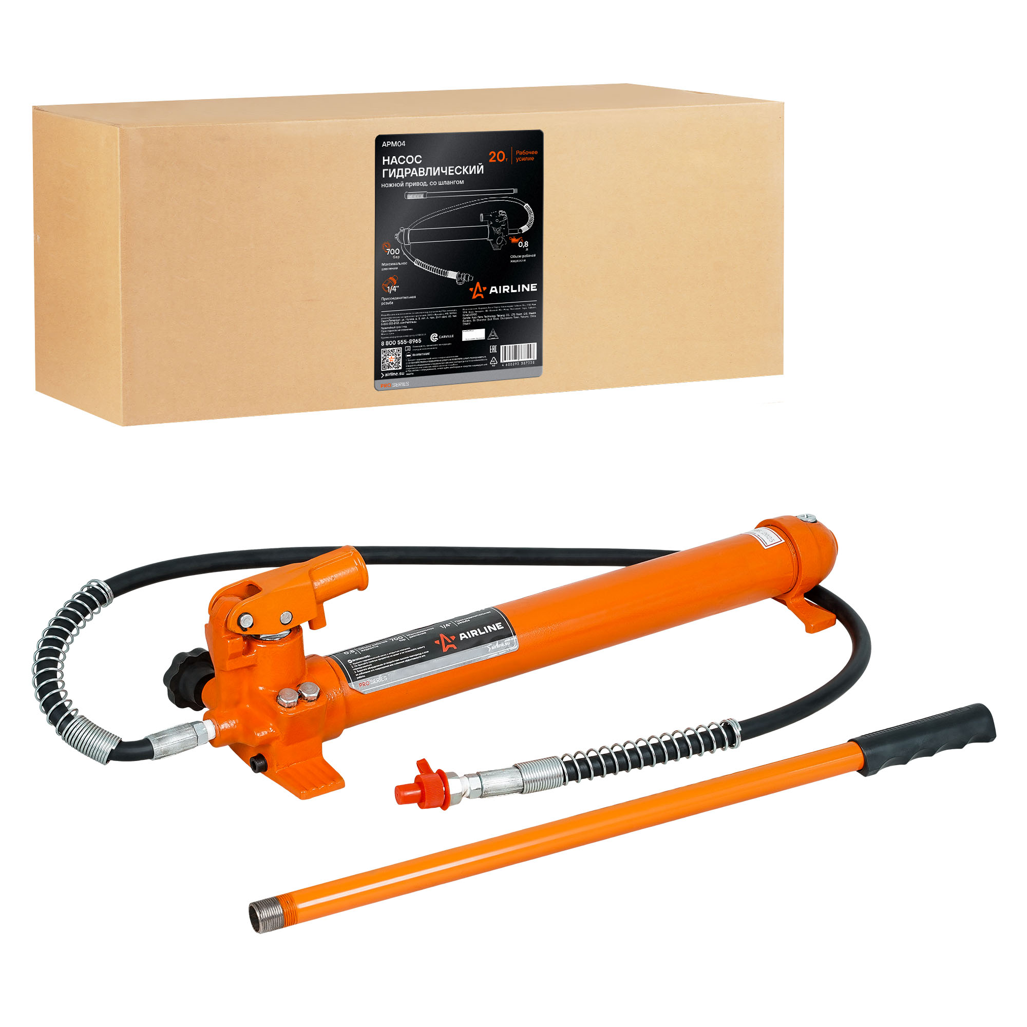 Ручной гидравлический насос APM04 является универсальным инструментом, который производит давление для различного гидравлического оборудования. Насос выполнен из высокопрочной стали и снабжен предохранительным клапаном, который предотвращает перегрузы. Объём рабочей жидкости составляет 0.77л. Длинна рукава высокого давления составляет 1.4 м и имеет диаметр 15 мм. В комплекте также идет быстроразъемное соединение с резьбой 1/4. Ручной Насос применим для работ с гидравлическими цилиндрами прямого и обратного действия в гидравлических гаражных прессах и кранах, стяжках пружин подвески автомобилей, наборах гидравлических растяжек для кузовного ремонта.