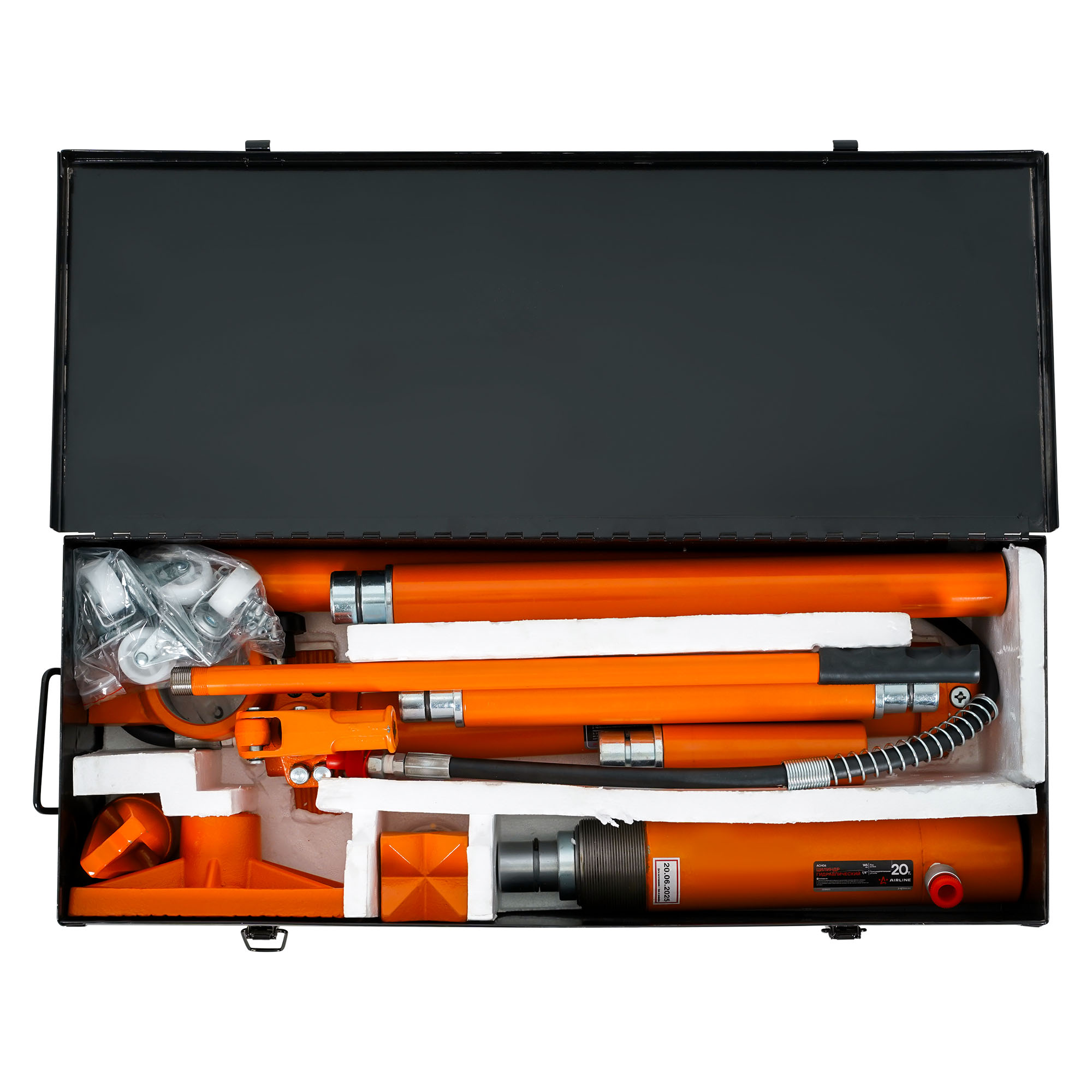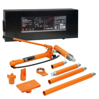 Набор гидравлического инструмента для кузовного ремонта AIRLINE ASHBS03 20 т, 18 предметов. Комплект предназначен для проведения рихтовочных и кузовных работ, таких как восстановления геометрии больших участков и целых конструкций, главным образом проемов дверей, окон, капота и багажника. В набор входит: гидравлический насос, цилиндр, удлинители и фигурные насадки. Все элементы выполнены из высокопрочной стали, которые отличаются надежностью и долговечностью.