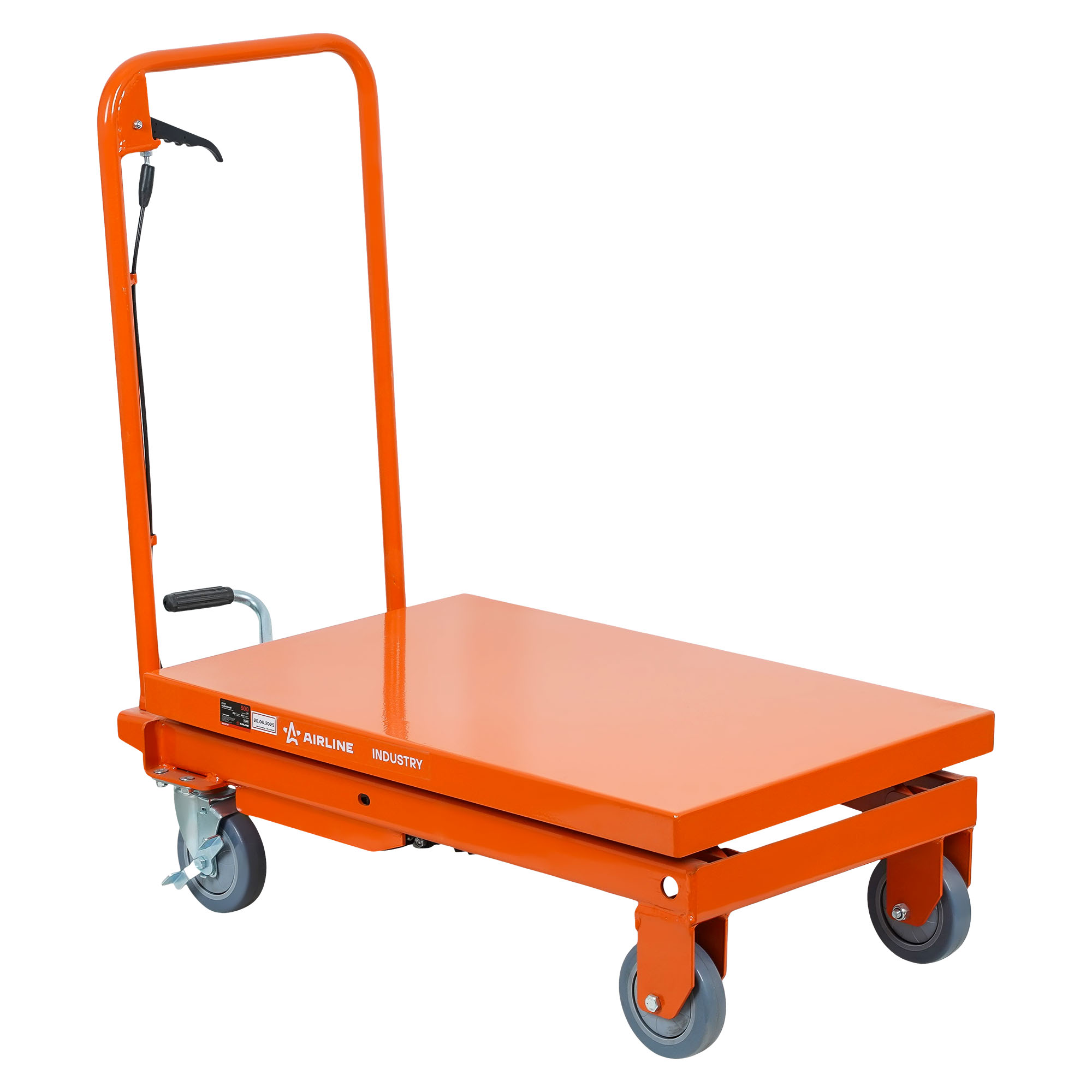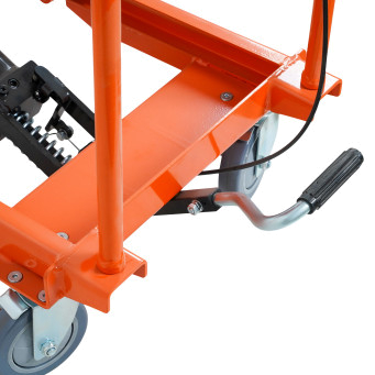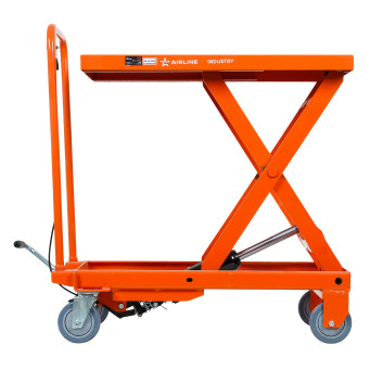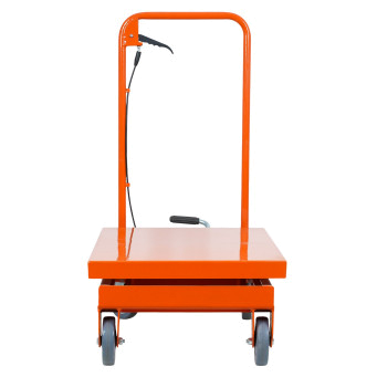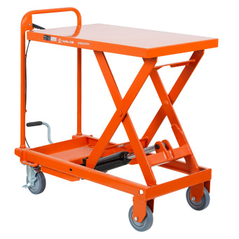 Подъемный гидравлический стол предназначен для подъема, опускания и перемещения груза. Стол имеет гидравлический ножной привод, который позволяет произвести быстрый подъем груза. Опускание производится путем нажатия рычага на ручке подъемного стола. Гидравлическая система позволяет столу опускаться плавно, обеспечивая безопасность работ с грузами. Стол позволяет не только приподнимать грузы, но и перемещать их.