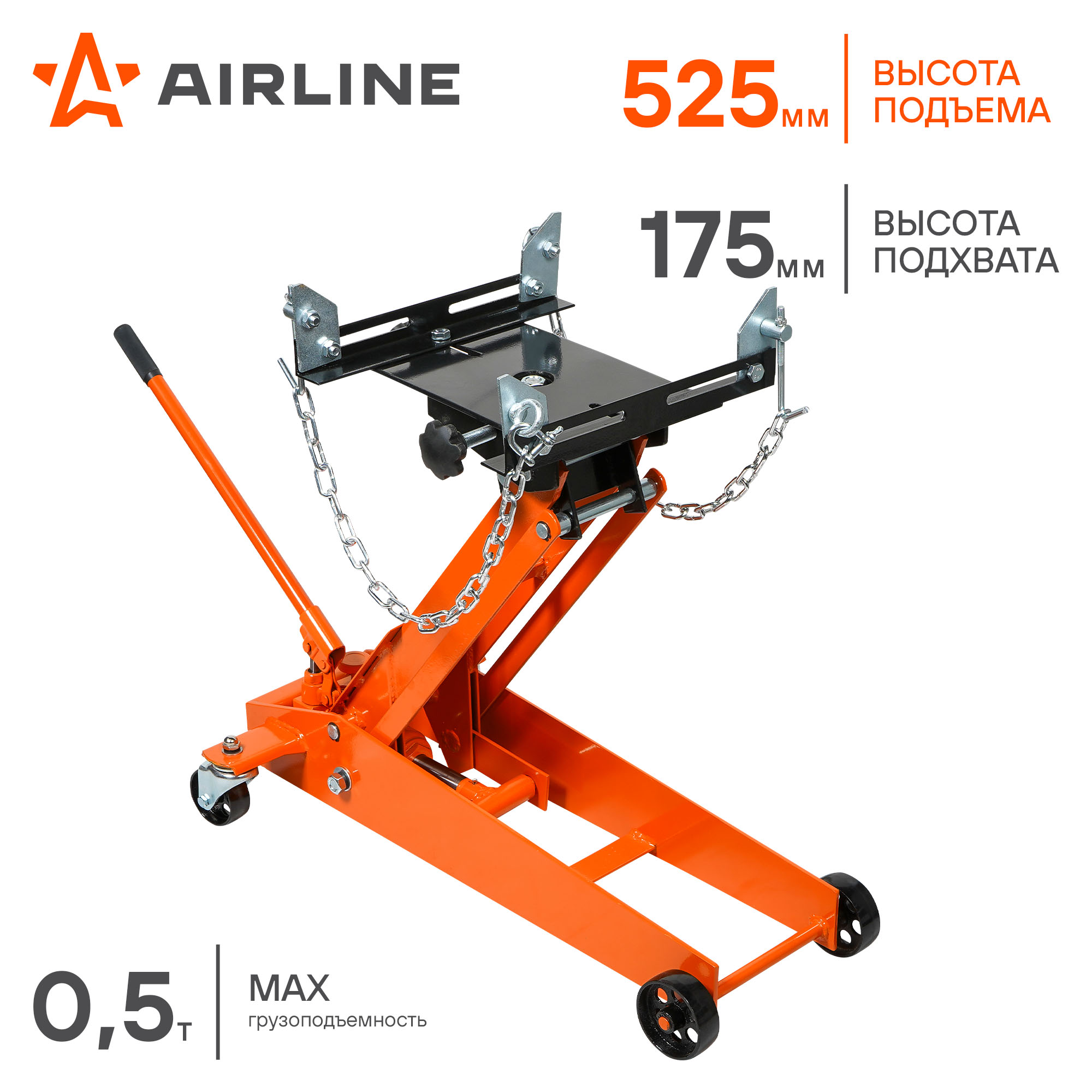 Трансмиссионный домкрат AIRLINE 0.5т, MIN-175 мм, MAX-525 мм. Используют для снятия и транспортировки механических узлов. Модель обладает ручным приводом, специальными креплениями для коробки передач и других агрегатов. Ручка домкрата вращается на 360 градусов, что обеспечивает удобство работы. Широкая опора предотвращает срыв груза во время подъема. Транспортировочные колеса обеспечивают быстрое перемещение оборудования внутри рабочей зоны.