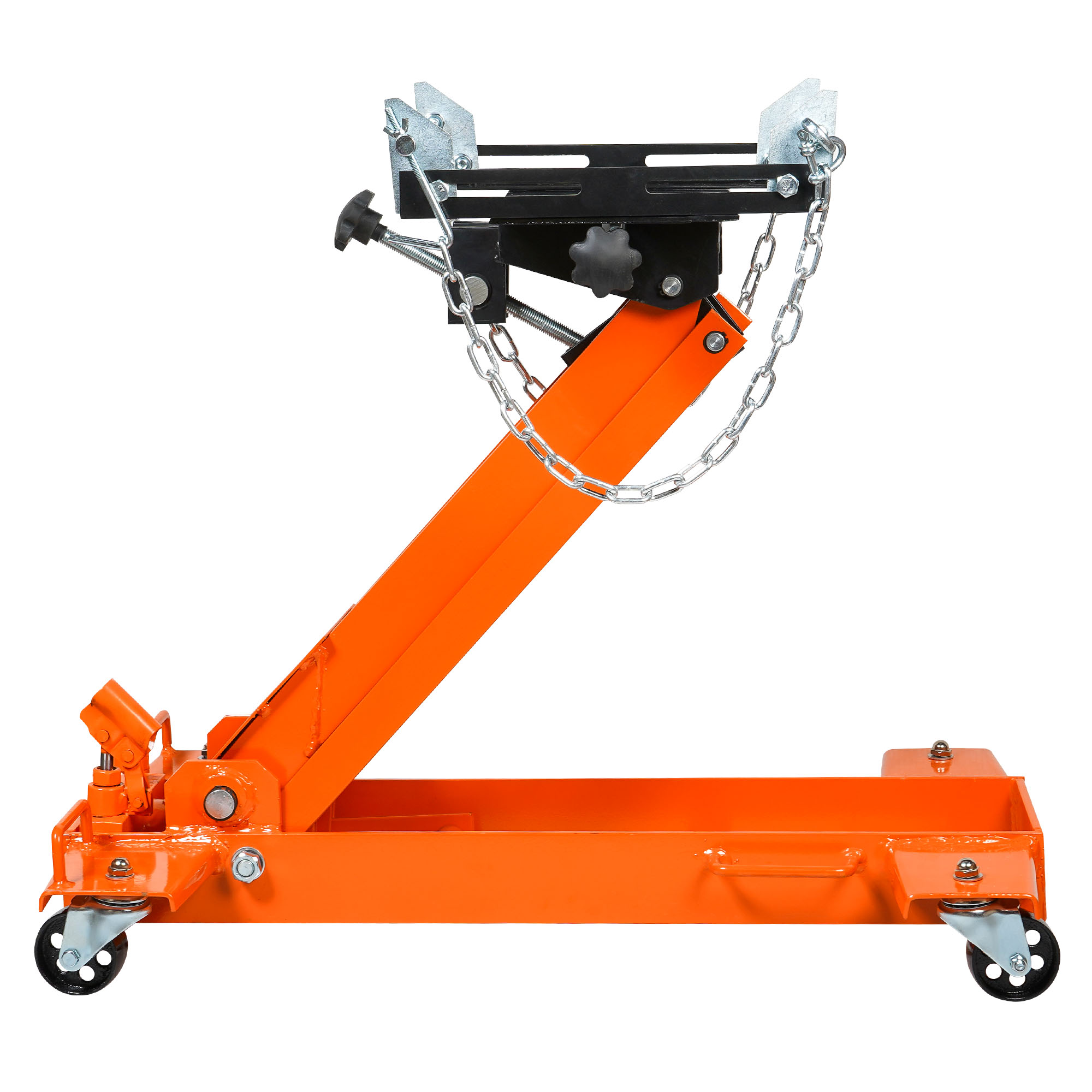 Трансмиссионный домкрат AIRLINE 1т, MIN-175 мм, MAX-700 мм. Используют для снятия и транспортировки механических узлов. Модель обладает ручным приводом, специальными креплениями для коробки передач и других агрегатов. Ручка домкрата вращается на 360 градусов, что обеспечивает удобство работы. Широкая опора предотвращает срыв груза во время подъема. Транспортировочные колеса обеспечивают быстрое перемещение оборудования внутри рабочей зоны.