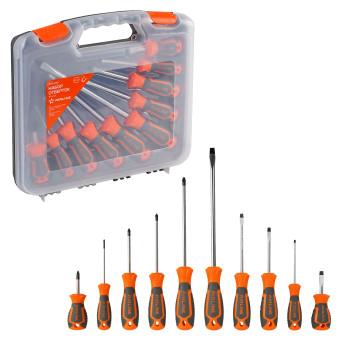 Сочетание твёрдых и мягких элементов рукоятки оптимально распределяет усилие, прилагаемое к инструменту, и предотвращает проскальзывание. Эргономичный дизайн облегчает работу. Отвёртки AIRLINE удобно подвешиваются за специальное отверстие. Лезвие отвёрток AIRLINE изготовлено из хром-ванадиевой стали, жало подвержено индукционной закалке и фосфатировано.